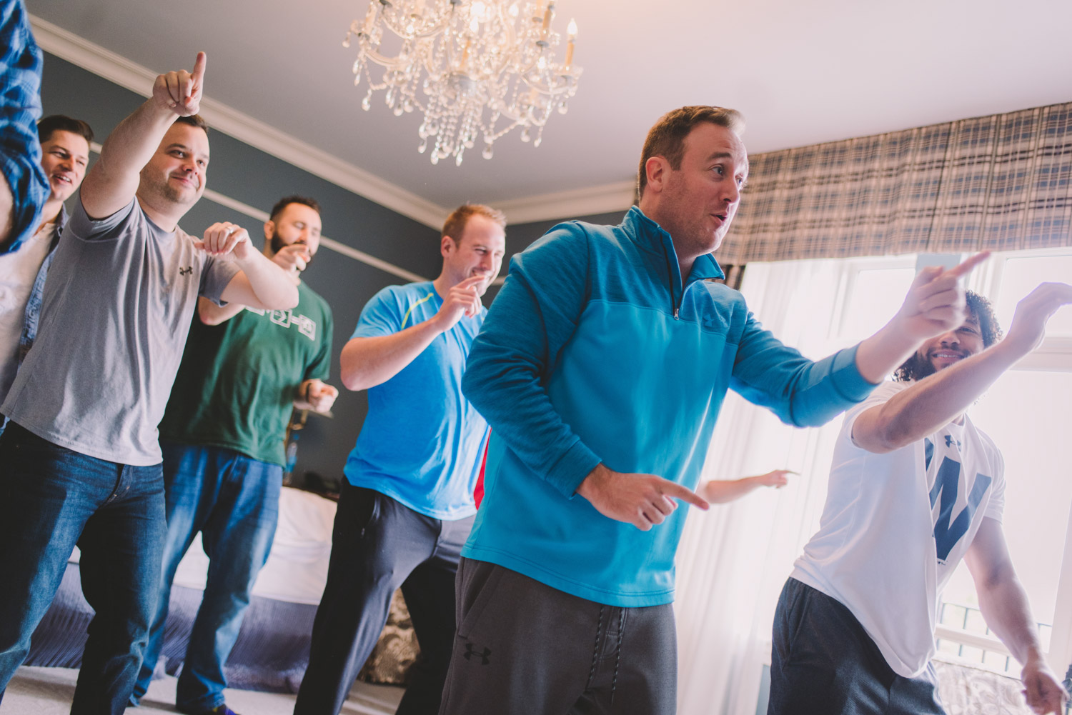 During the preparation, Scott and his groomsmen practiced their flash mob dance for the reception, got ready, and took a few swigs from the “Shotski”!