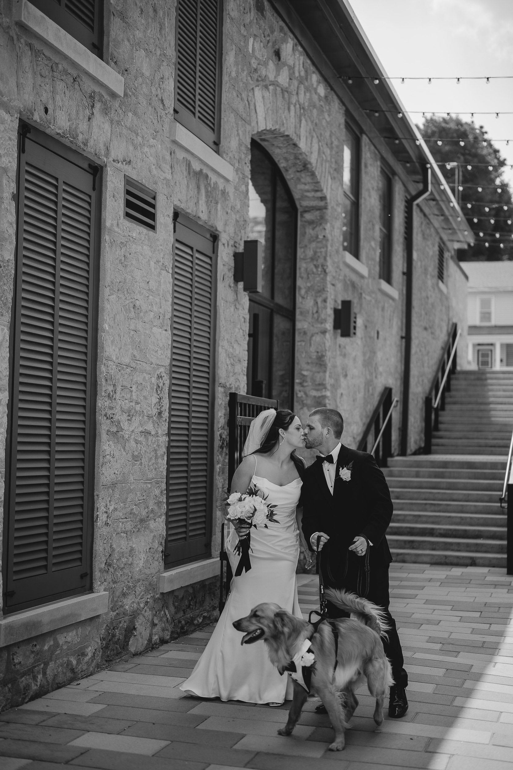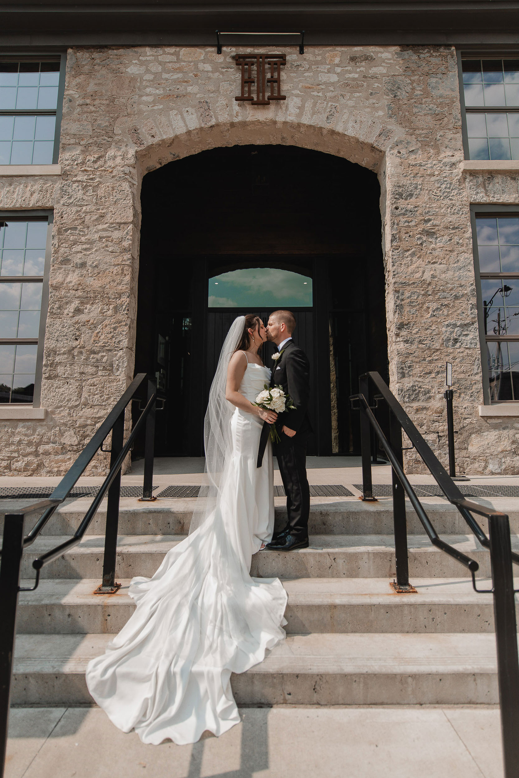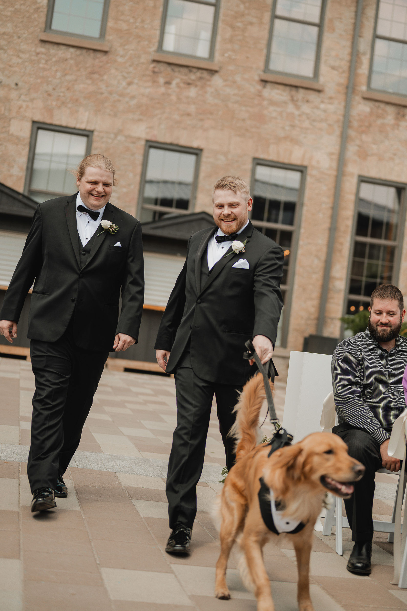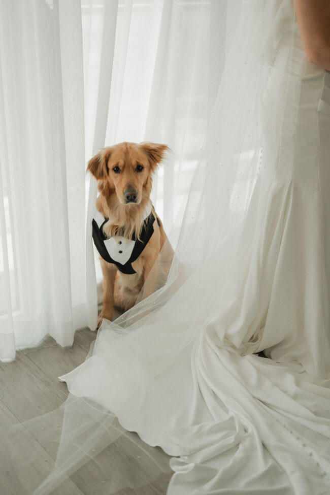 Kelsey and Tim’s wedding day at Tapestry Hall in Cambridge, Ontario was just perfection. Set against the beautiful historic architecture of this iconic venue, the day was filled with sunshine and laughter – and lots of great photos of them with the love of their life – their puppy Tucker!