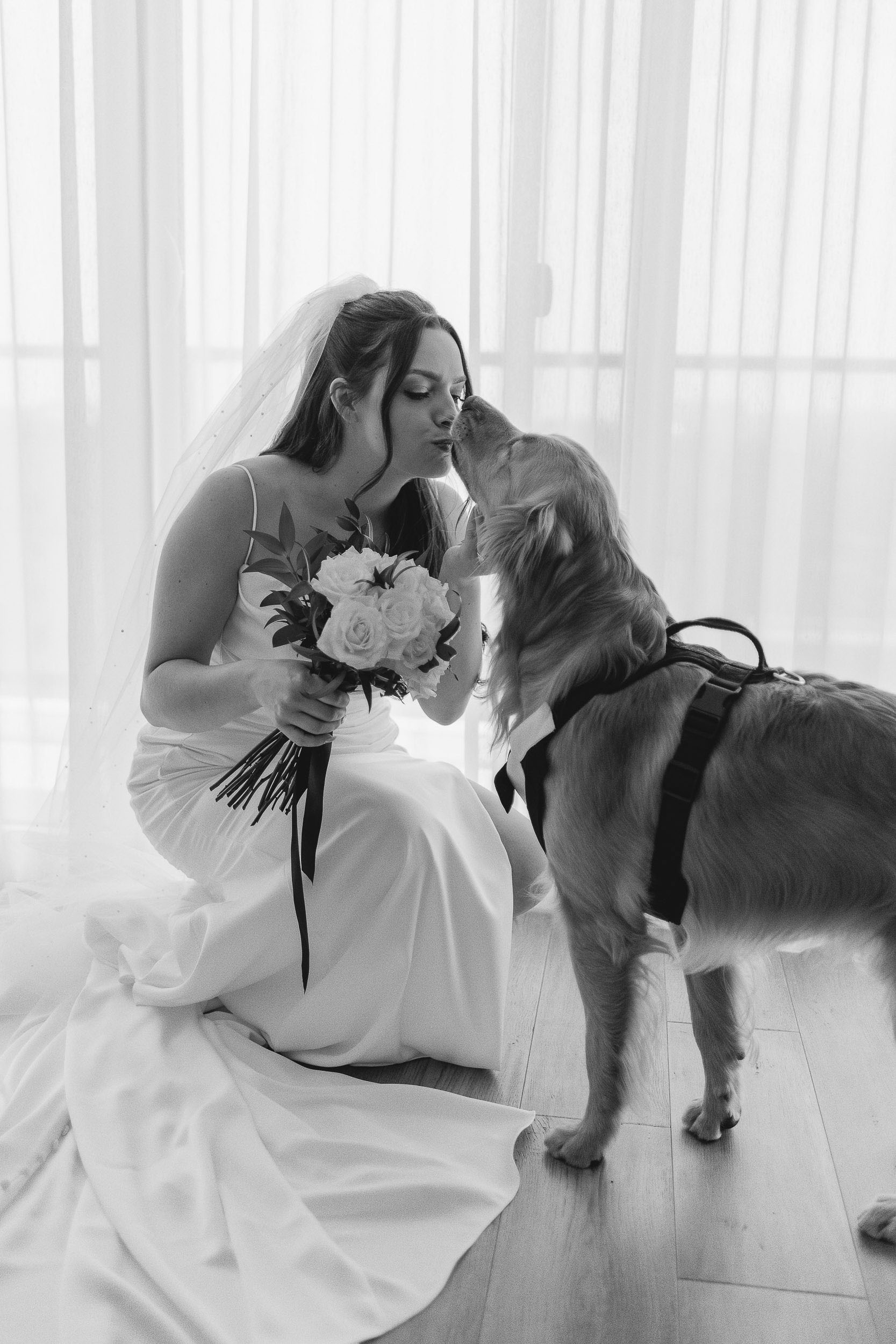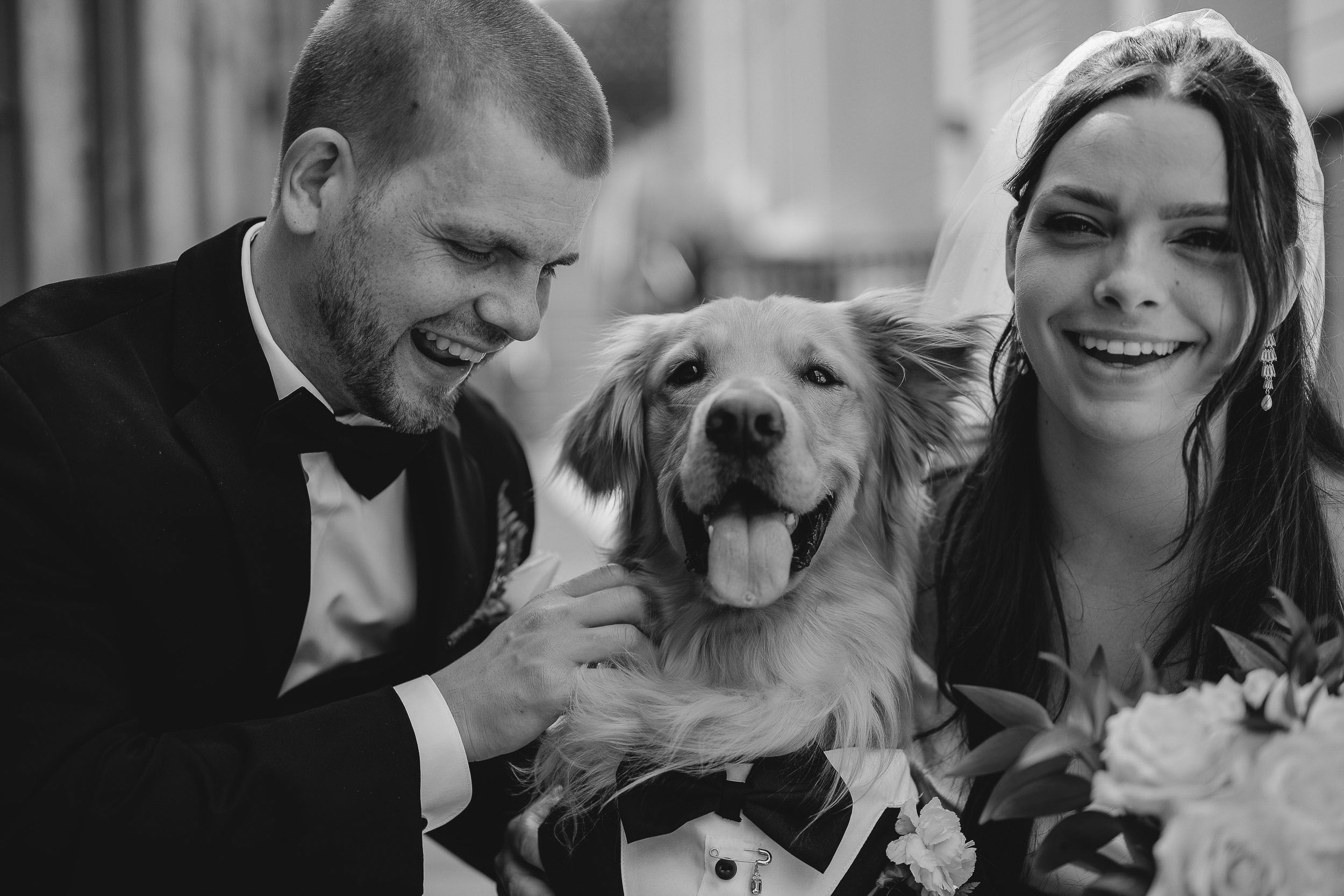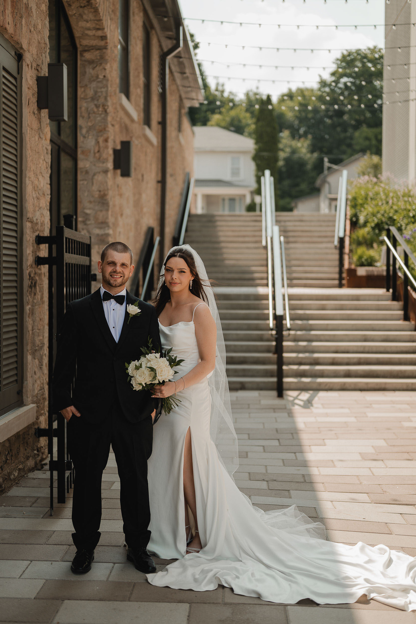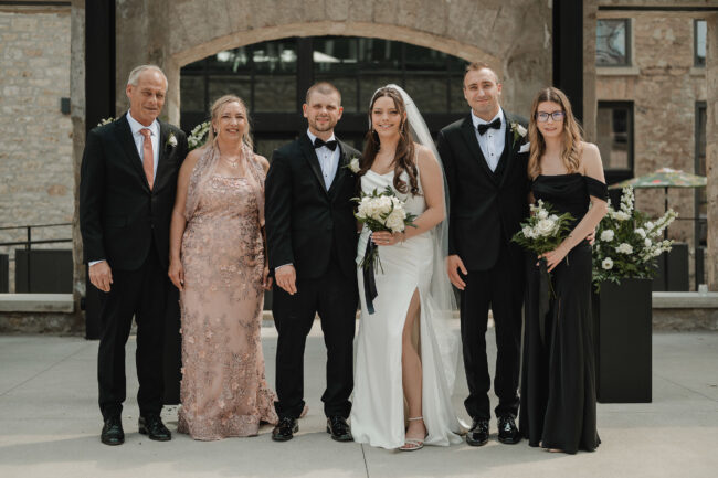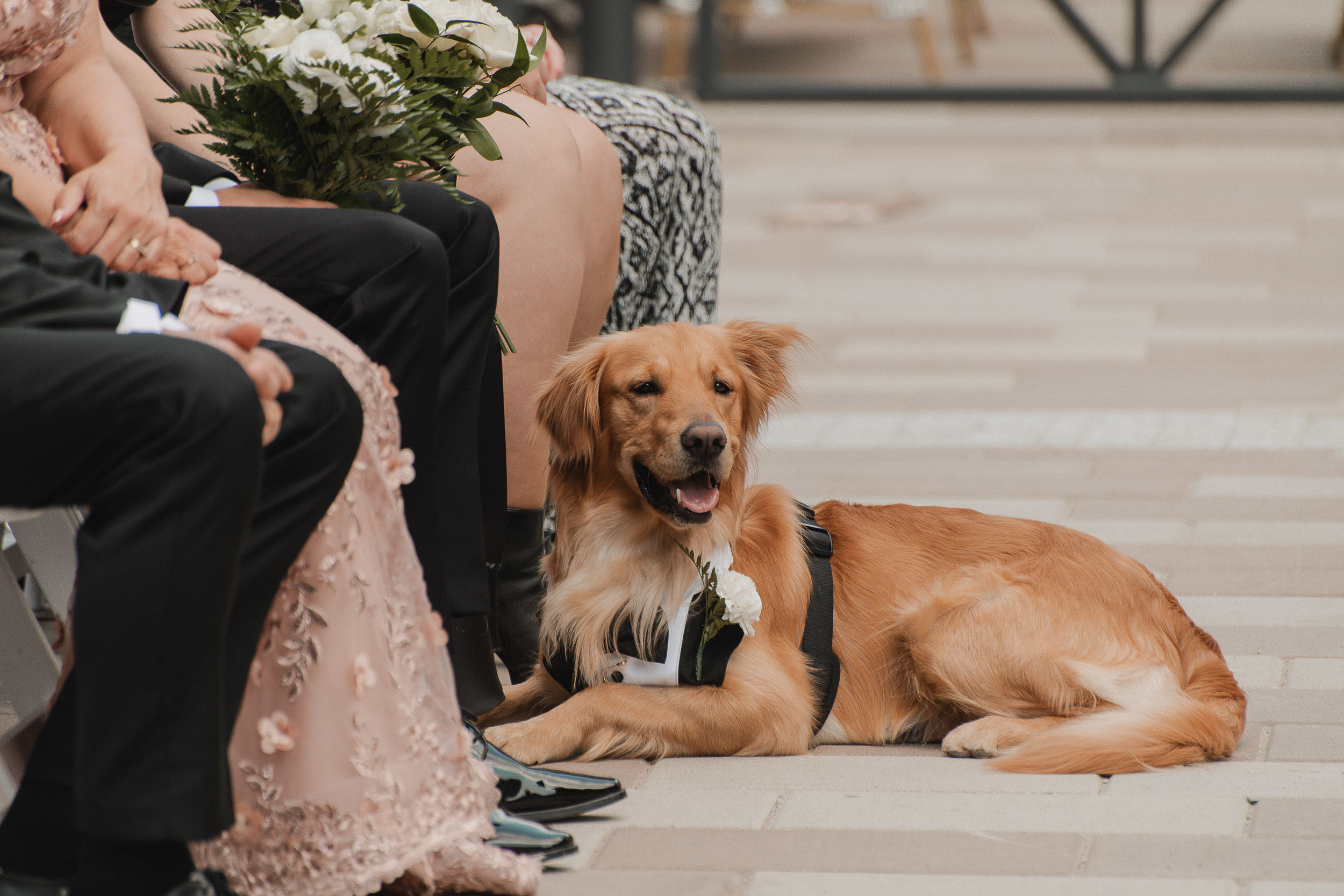 Kelsey and Tim’s wedding day at Tapestry Hall in Cambridge, Ontario was just perfection. Set against the beautiful historic architecture of this iconic venue, the day was filled with sunshine and laughter – and lots of great photos of them with the love of their life – their puppy Tucker!
