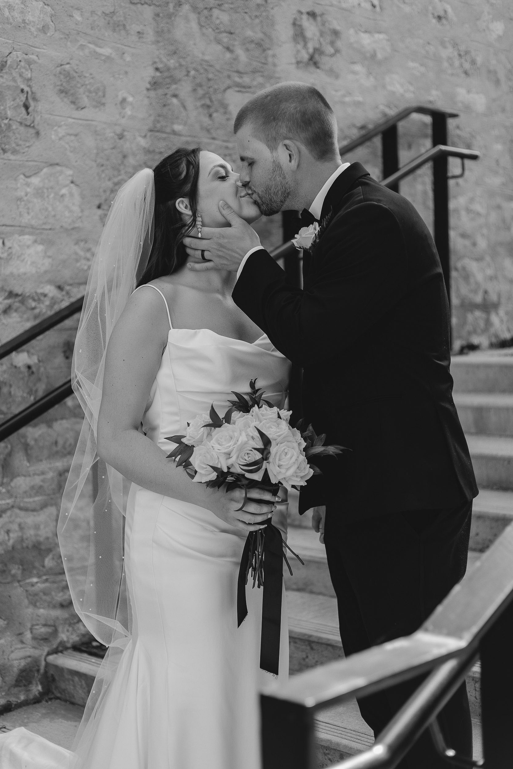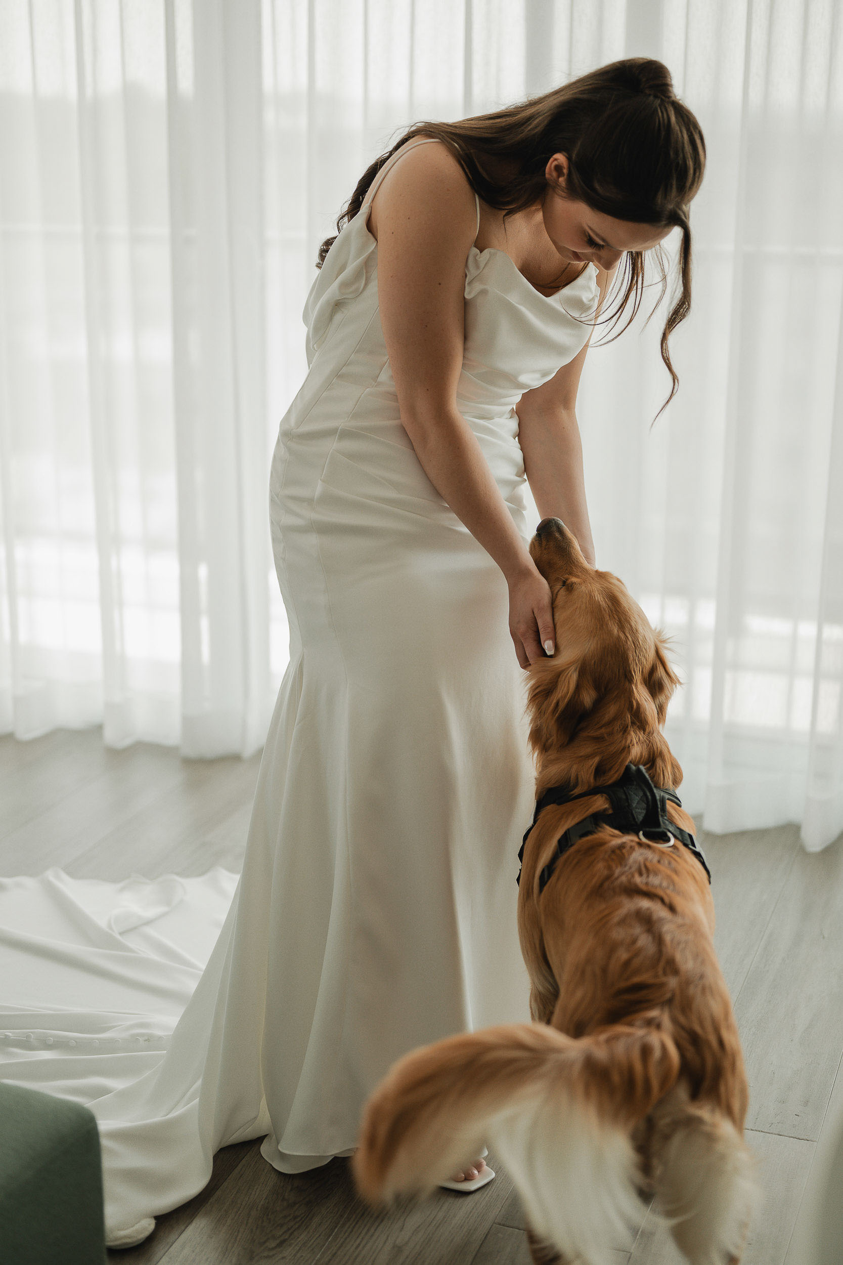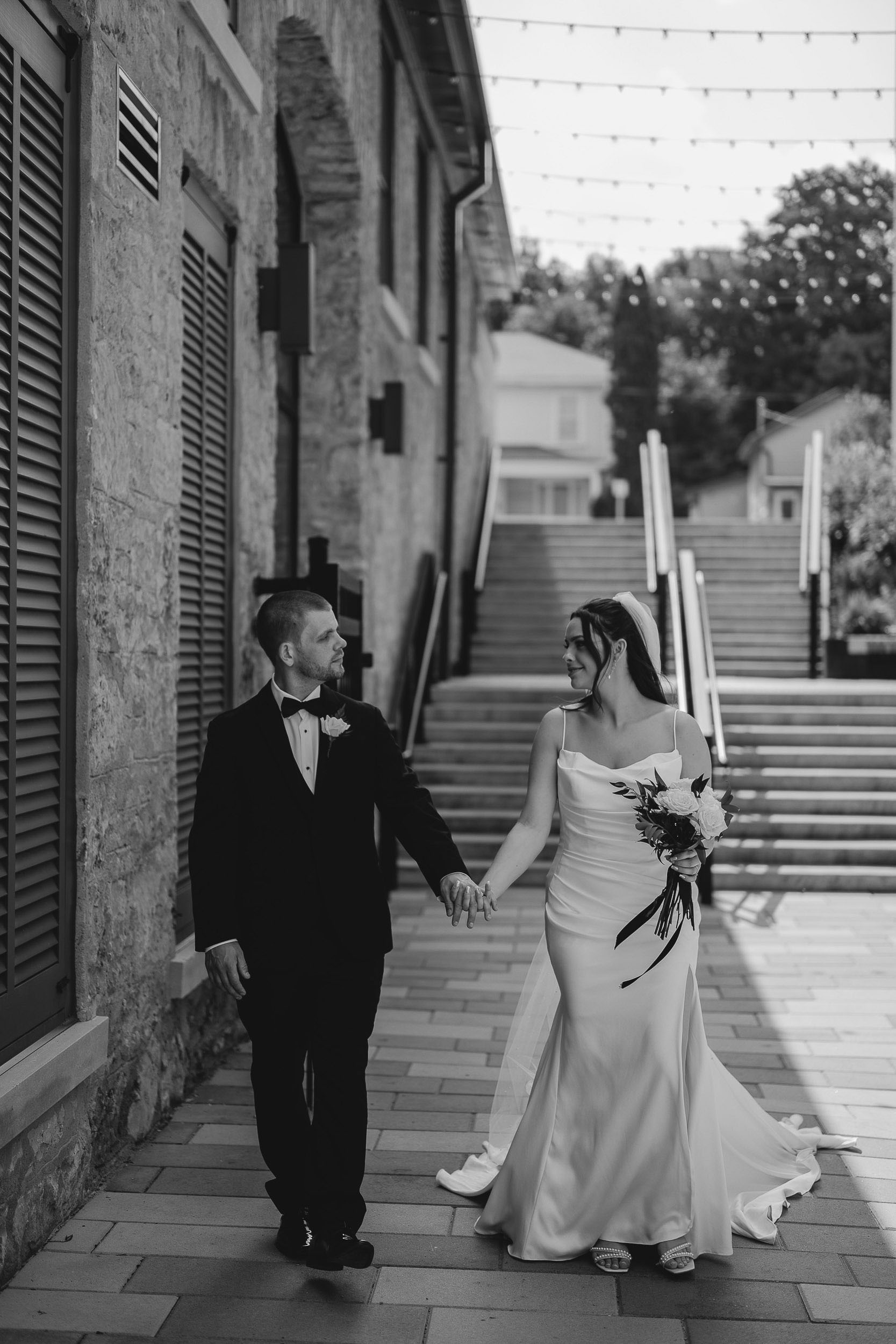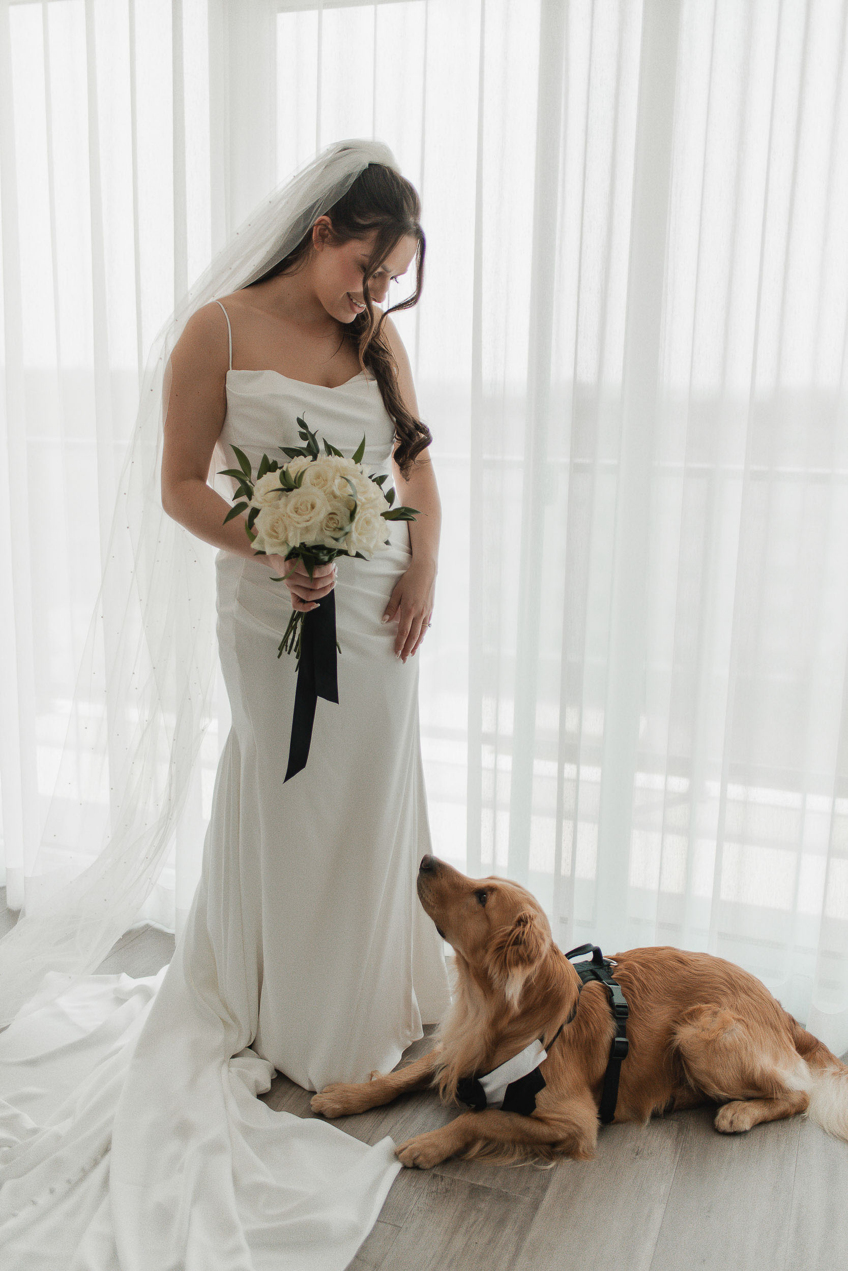 Kelsey and Tim’s wedding day at Tapestry Hall in Cambridge, Ontario was just perfection. Set against the beautiful historic architecture of this iconic venue, the day was filled with sunshine and laughter – and lots of great photos of them with the love of their life – their puppy Tucker!