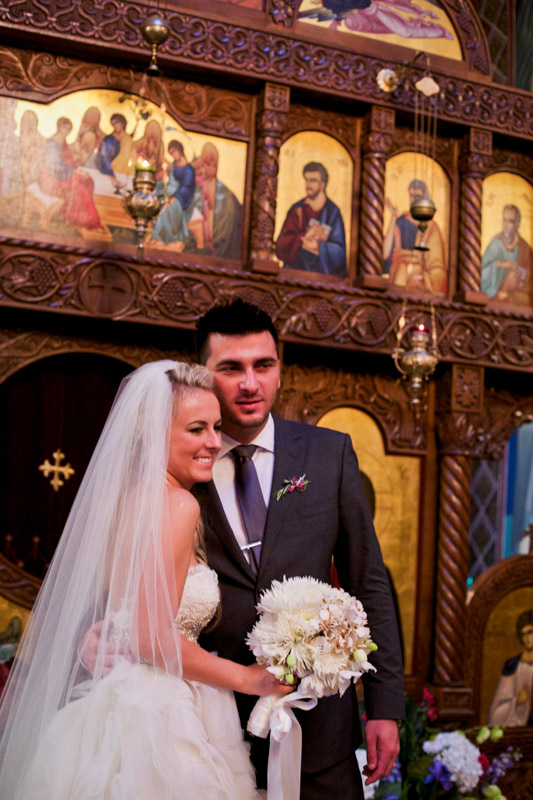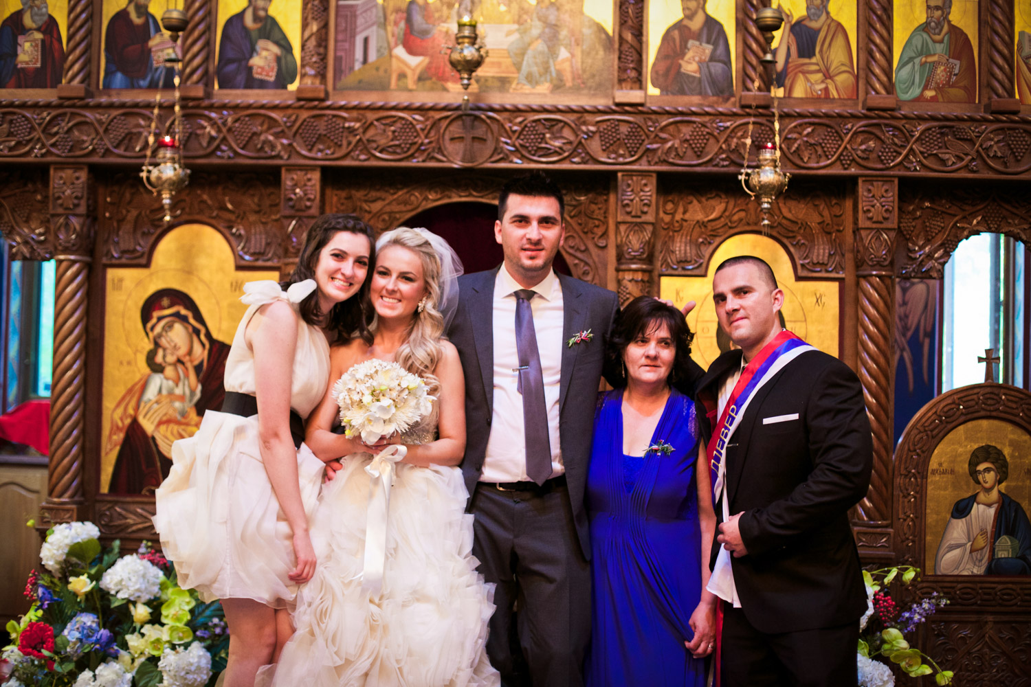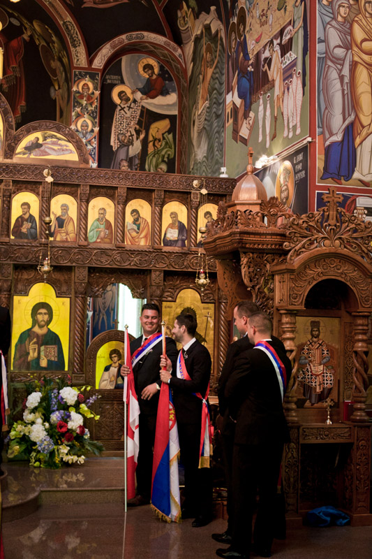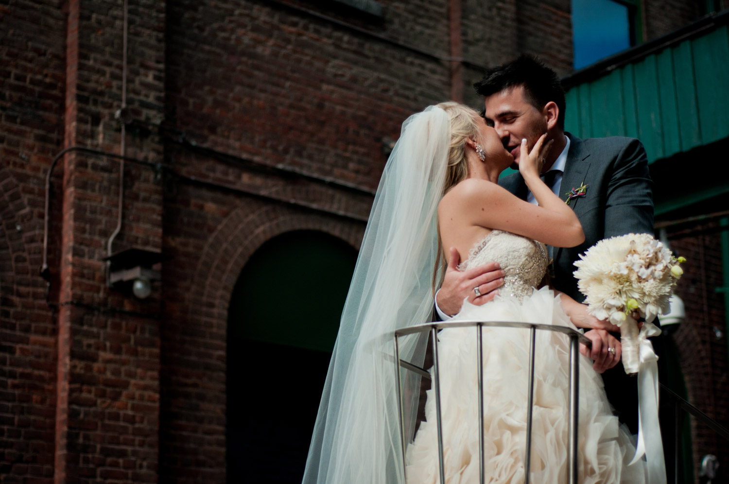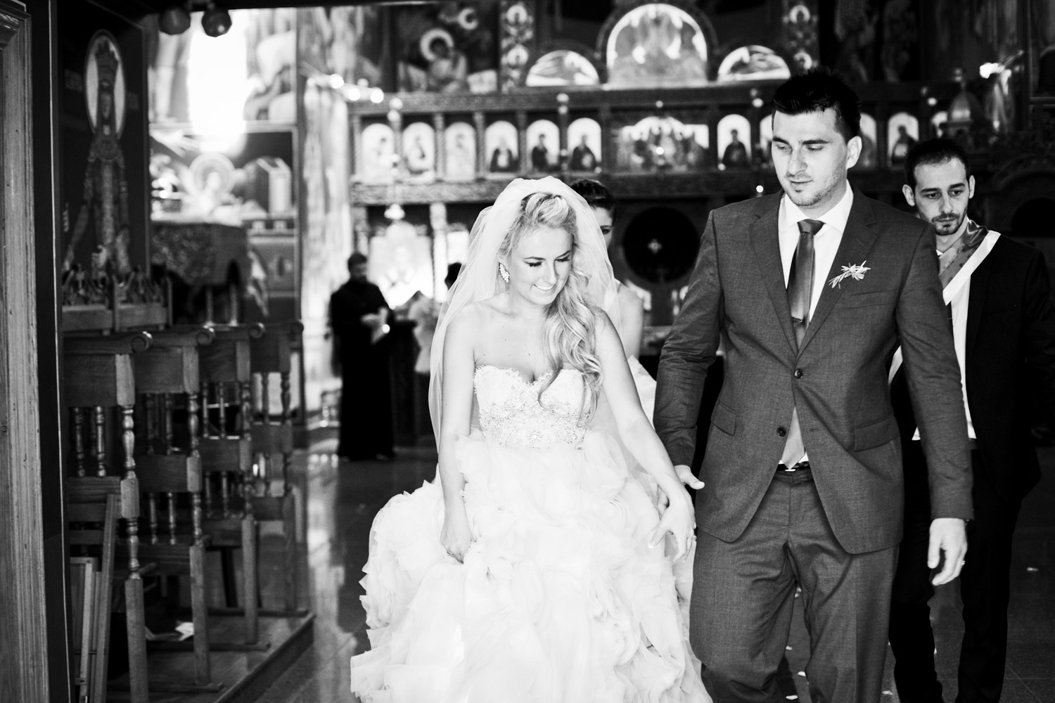 Danijela and Bozidar’s wedding was to take place in a few different cities – with the boys getting ready in Kitchener, and the girls getting ready in Cambridge.  This would be followed by a trip to the Holy Transfiguration Monastery in Milton for the traditional Serbian Orthodox ceremony.  For the bridal party photography, we travelled to Toronto’s iconic and busy Distillery District, followed by Polson Pier where we enjoyed an incredible view of the Toronto skyline.  The reception took place at the incredible One King West Hotel in the absolutely jaw-dropping Great Banking Hall.