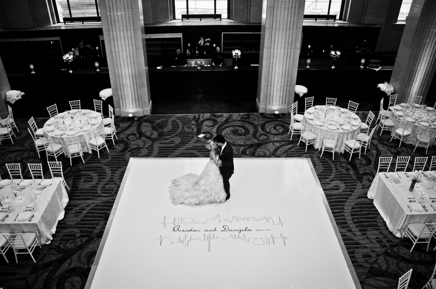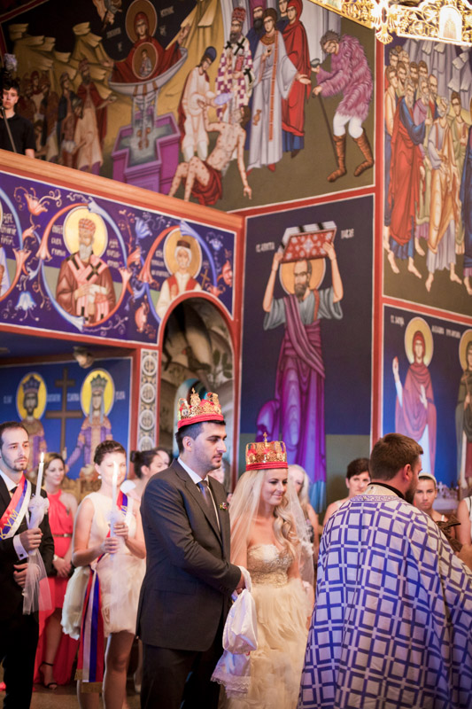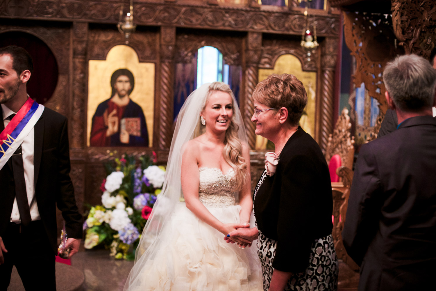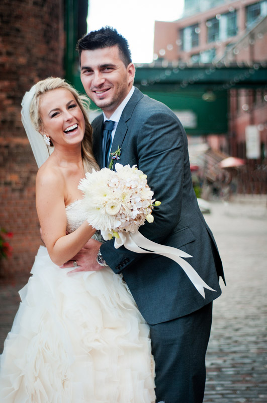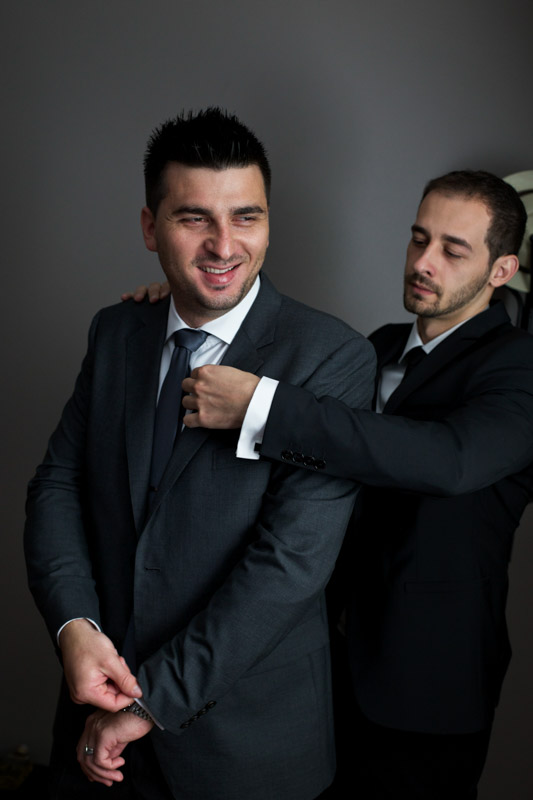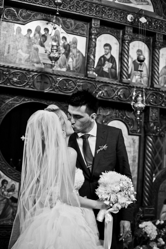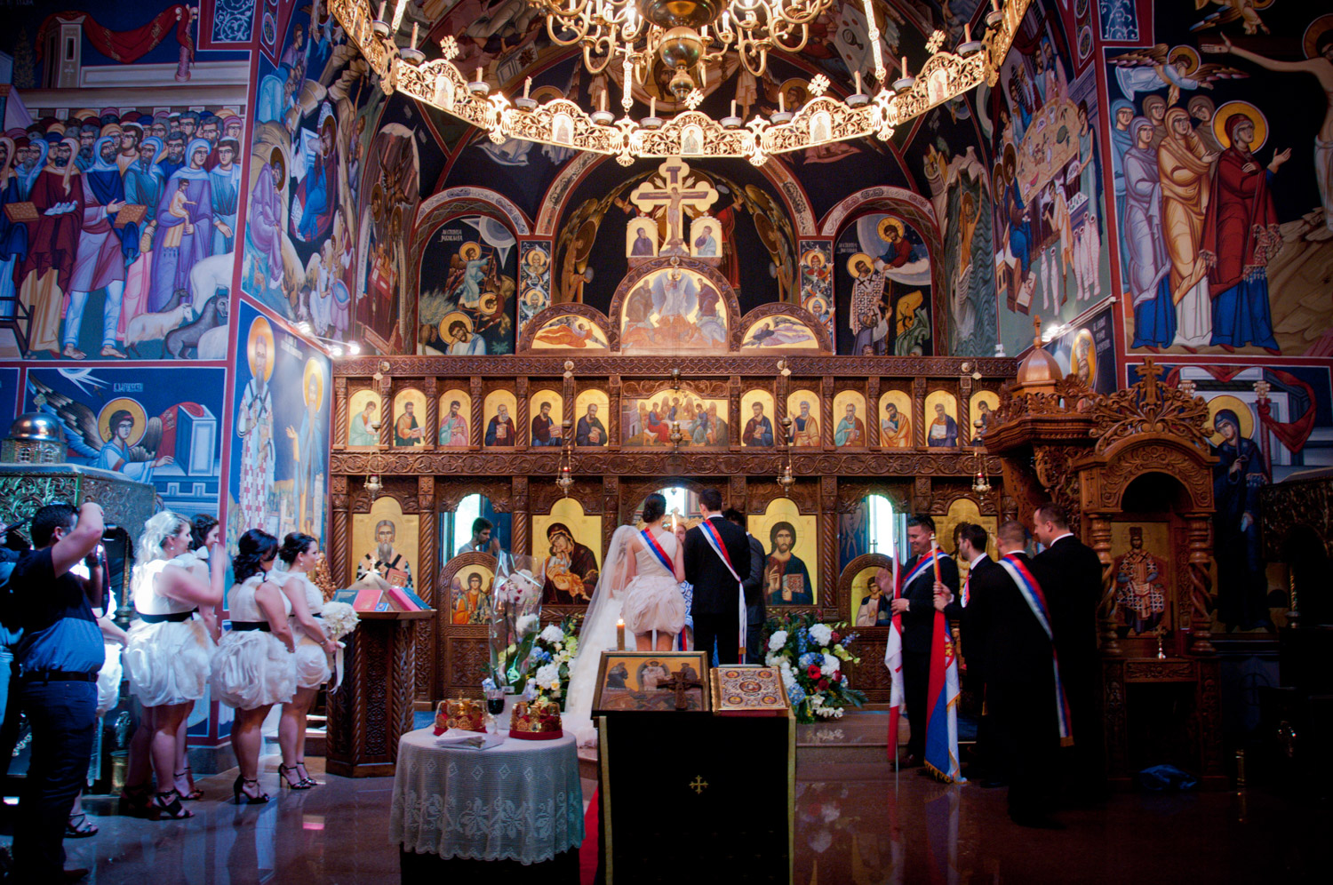 Danijela and Bozidar’s wedding was to take place in a few different cities – with the boys getting ready in Kitchener, and the girls getting ready in Cambridge.  This would be followed by a trip to the Holy Transfiguration Monastery in Milton for the traditional Serbian Orthodox ceremony.  For the bridal party photography, we travelled to Toronto’s iconic and busy Distillery District, followed by Polson Pier where we enjoyed an incredible view of the Toronto skyline.  The reception took place at the incredible One King West Hotel in the absolutely jaw-dropping Great Banking Hall.