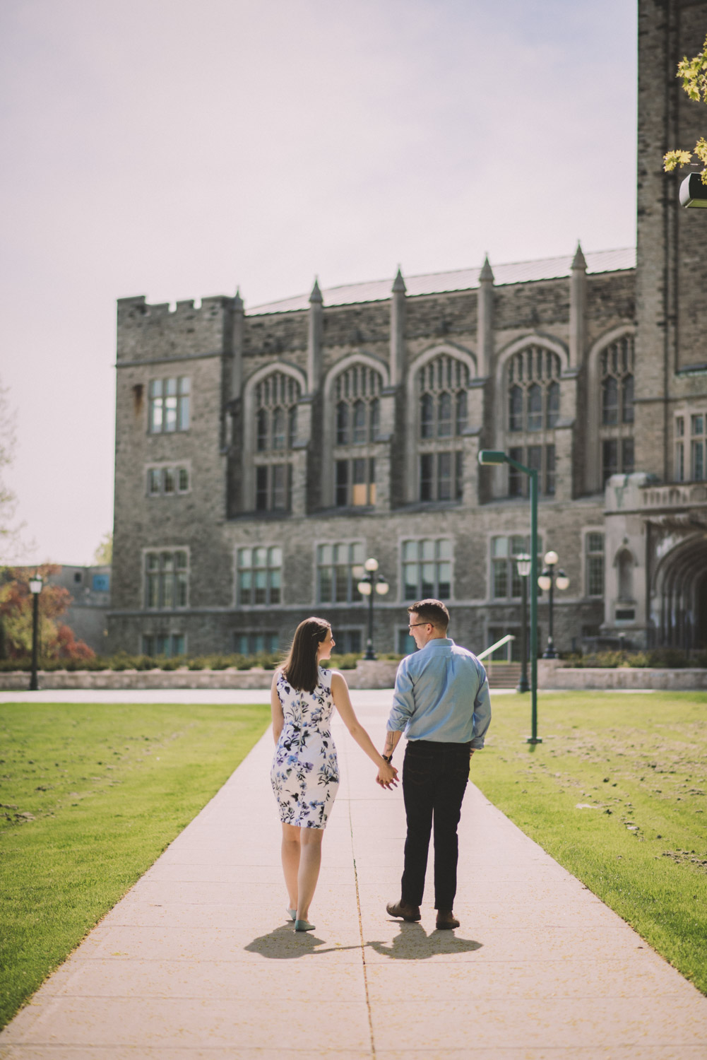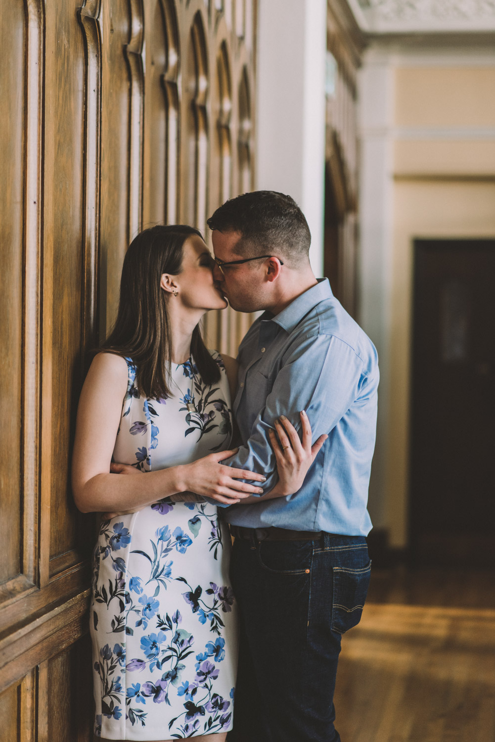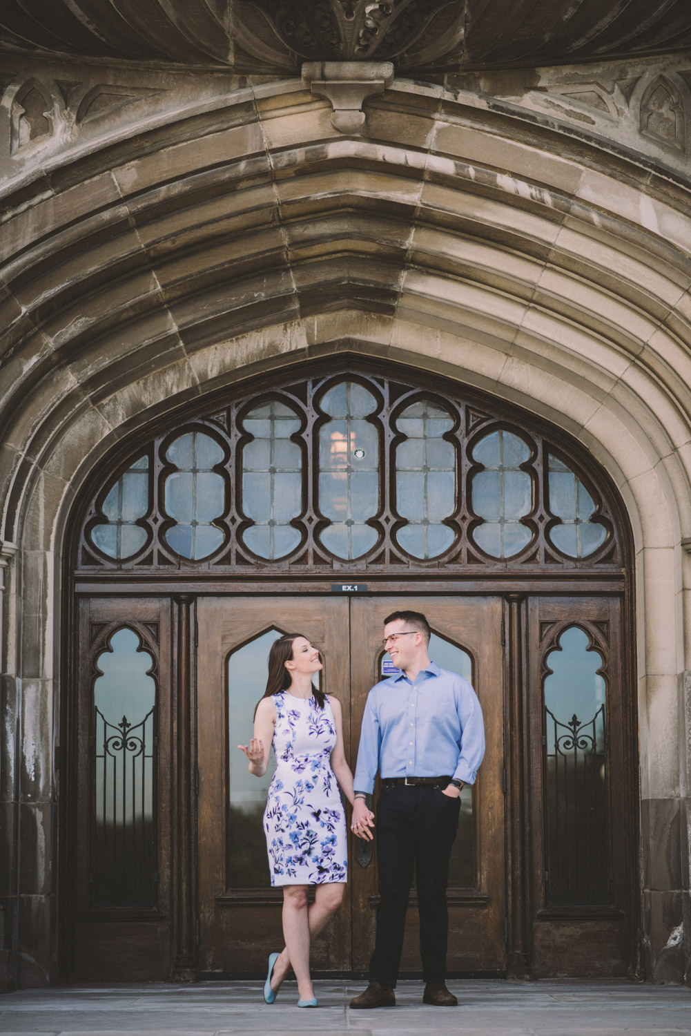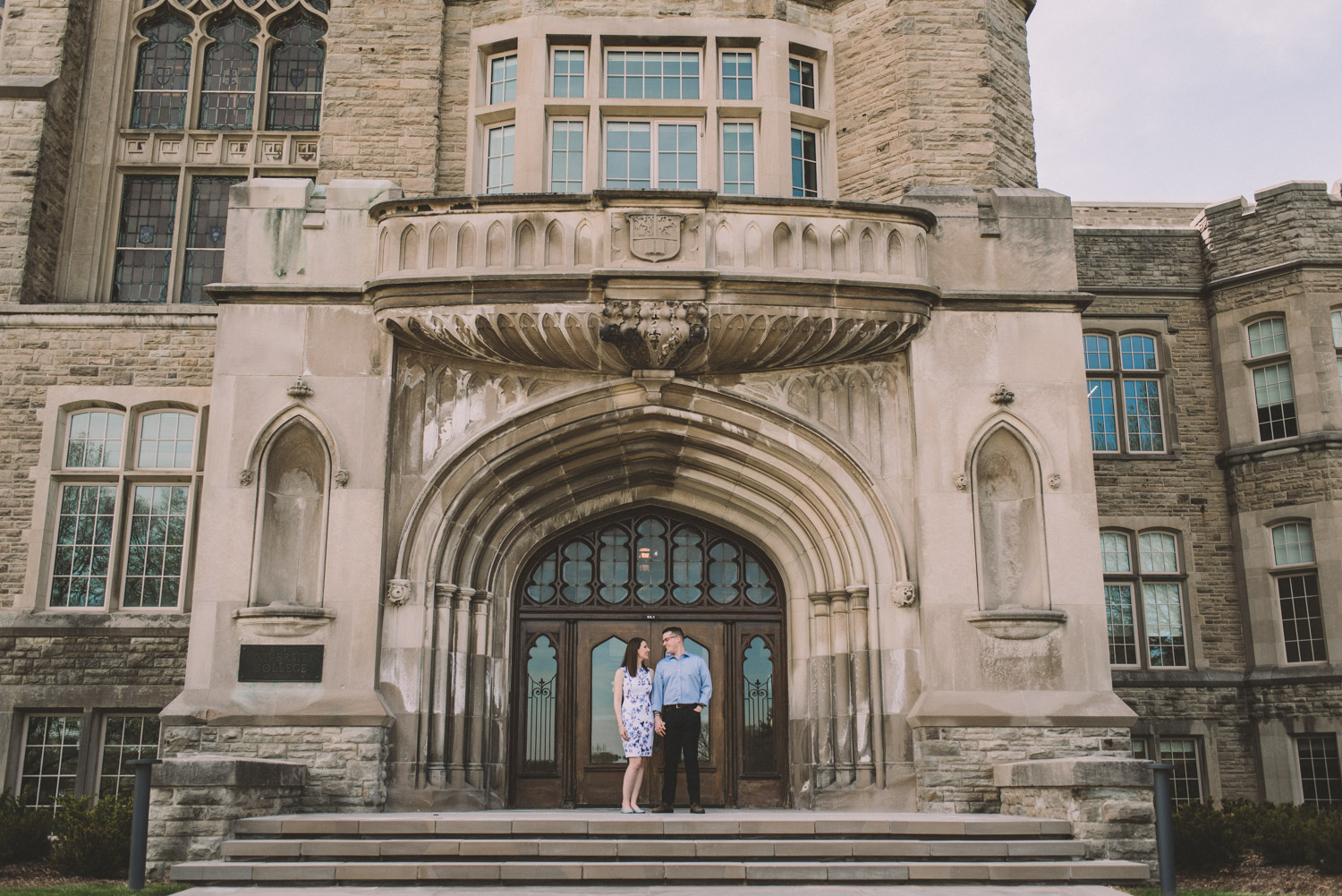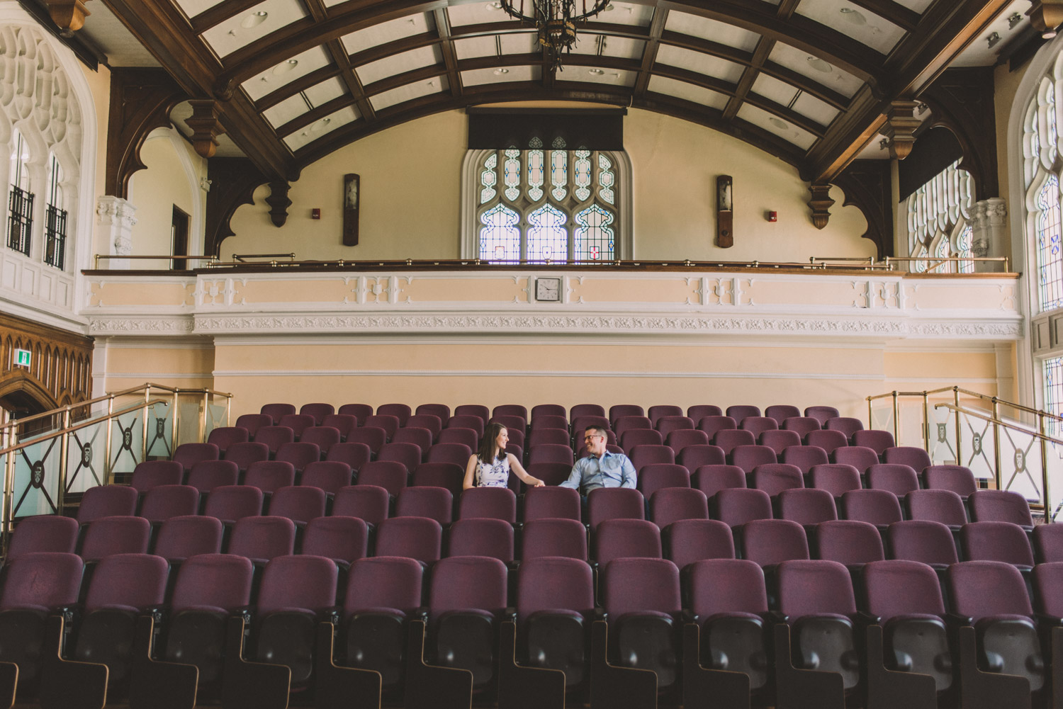 Mitch and Aurie’s engagement session took place at the iconic campus of Western University, where they had met. The gorgeous classic stone buildings on campus were a perfect backdrop for the engagement photos…and we were lucky that we were also able to take some photos inside one of the beautiful auditoriums where they had attended lectures!