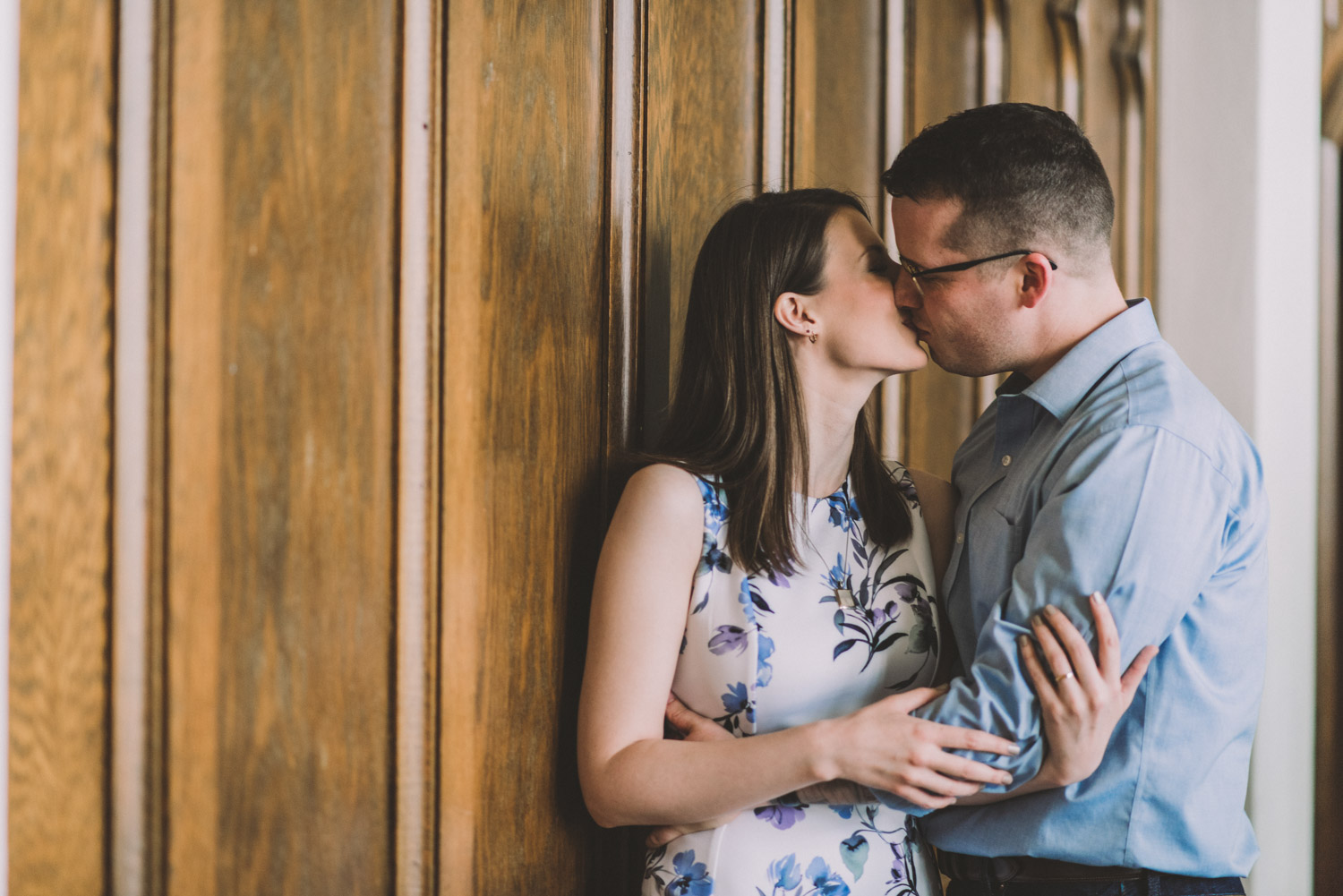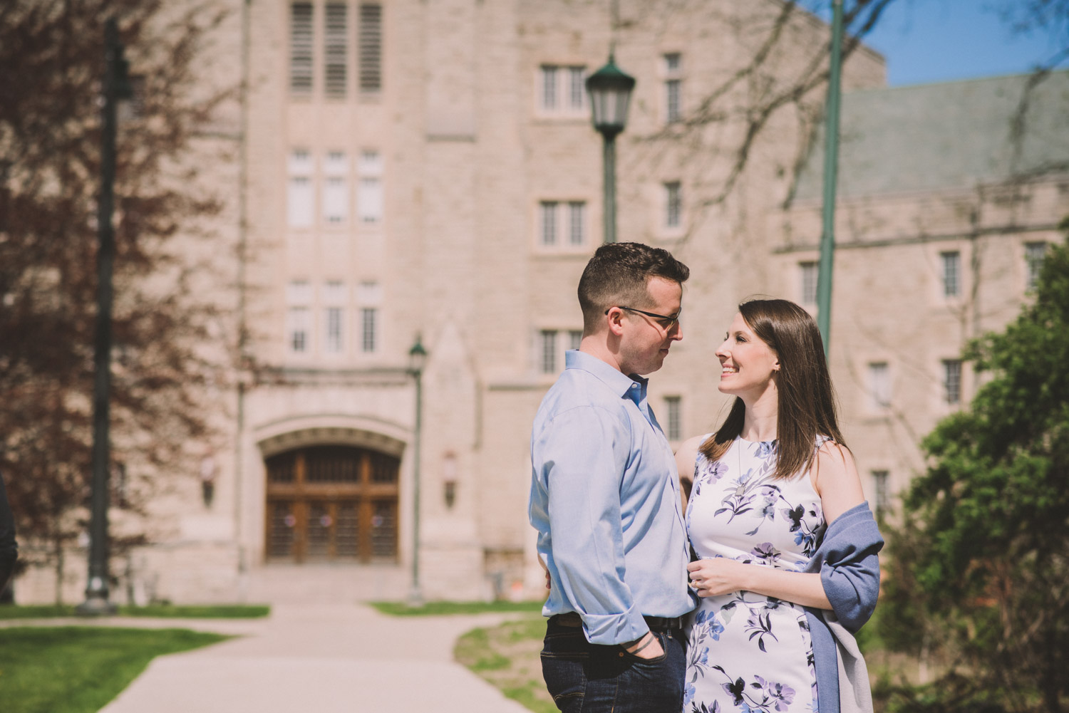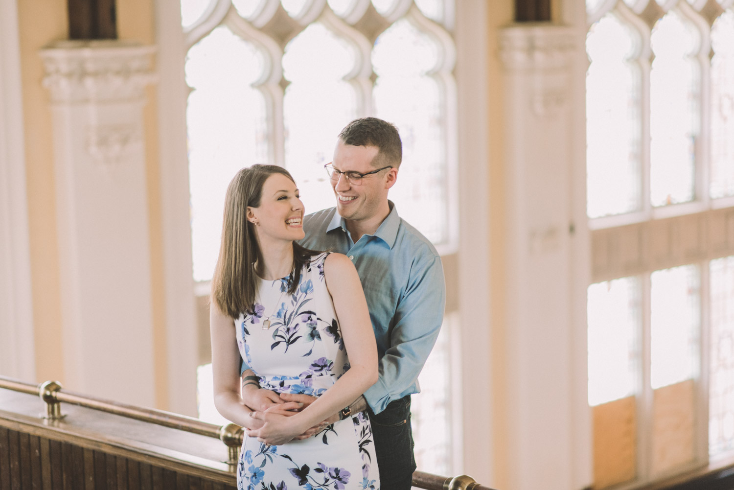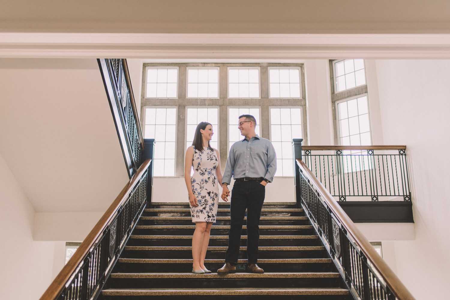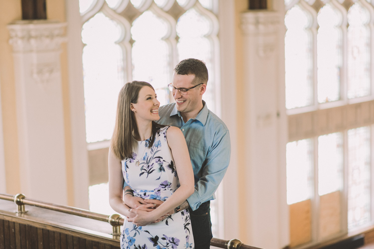 Mitch and Aurie’s engagement session took place at the iconic campus of Western University, where they had met. The gorgeous classic stone buildings on campus were a perfect backdrop for the engagement photos…and we were lucky that we were also able to take some photos inside one of the beautiful auditoriums where they had attended lectures!