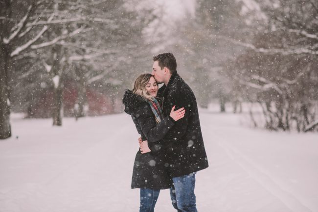 Josslyn and Adam’s stunning winter engagement session took place during a heavy snow fall in Guelph, at the University of Guelph Arboretum! “Whimiscal” was our word of the day, and was it ever!