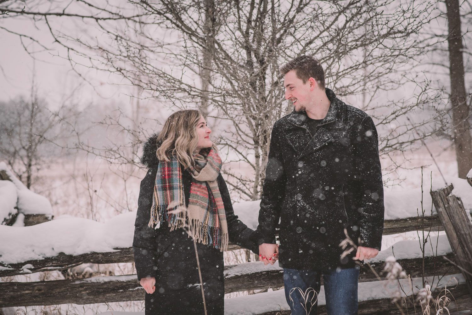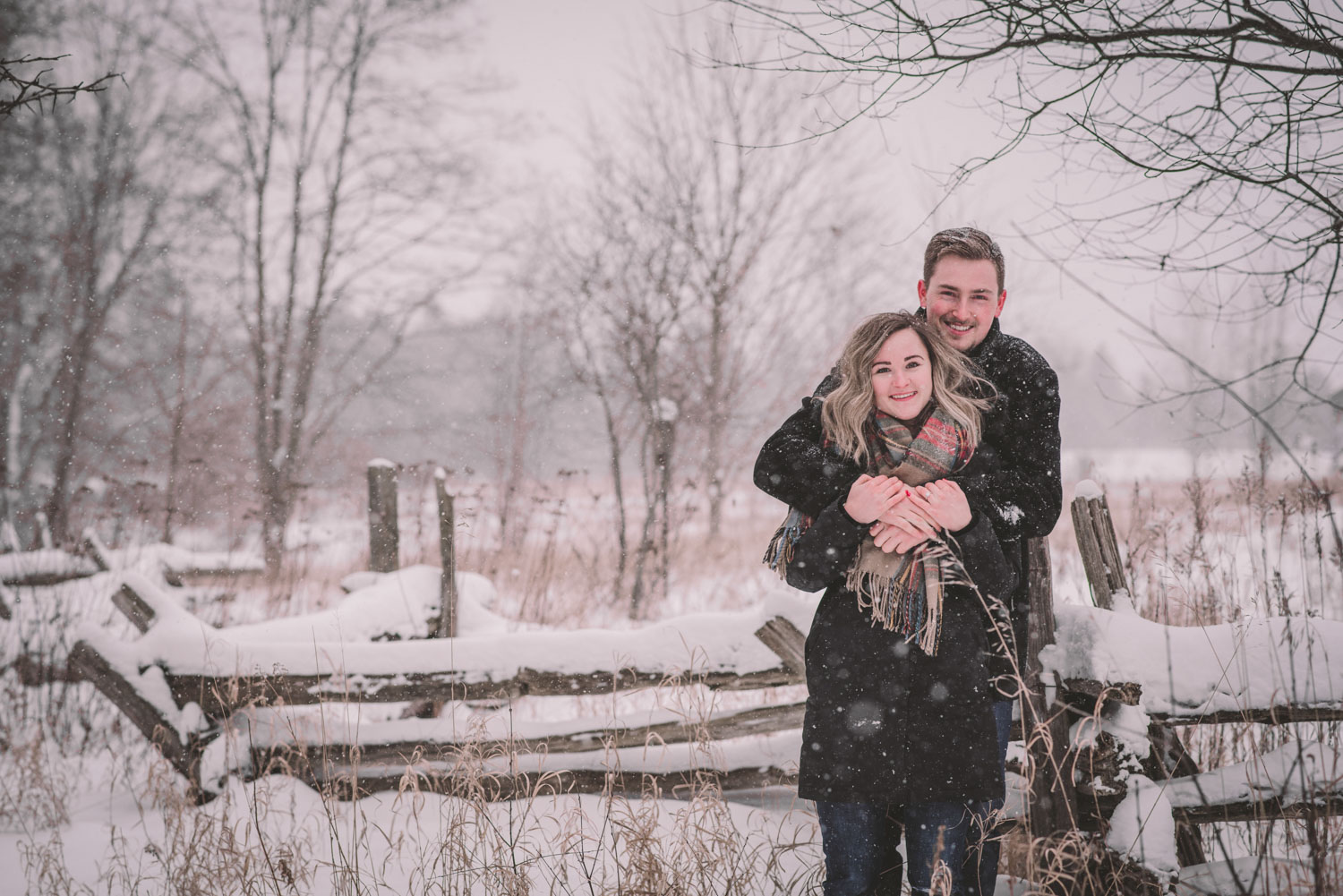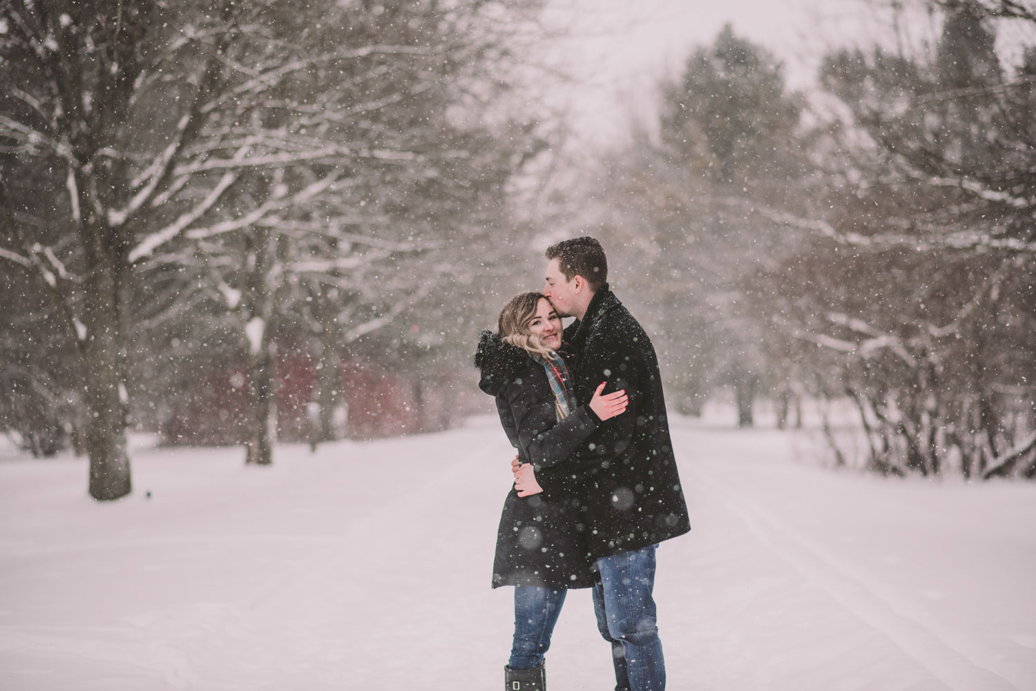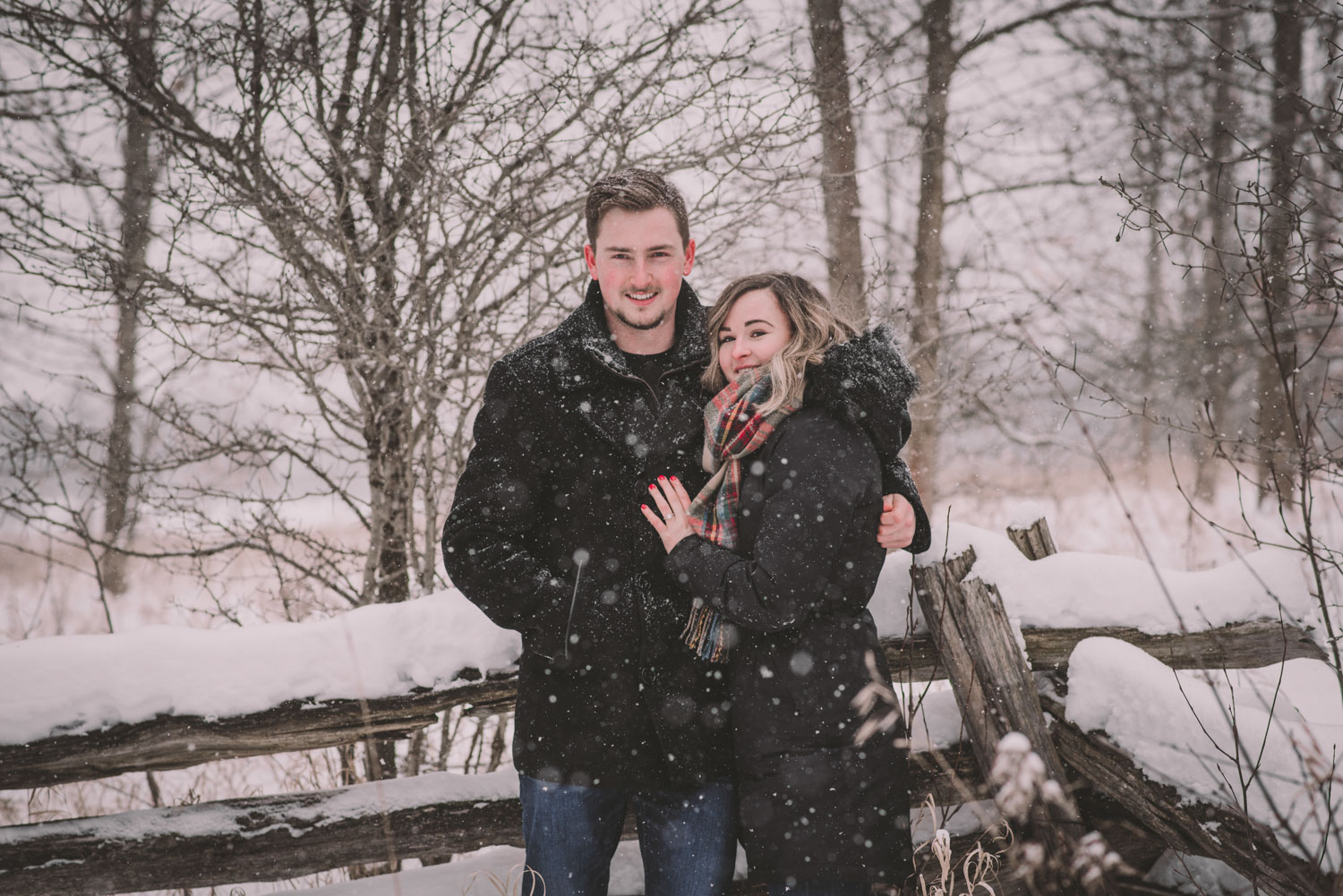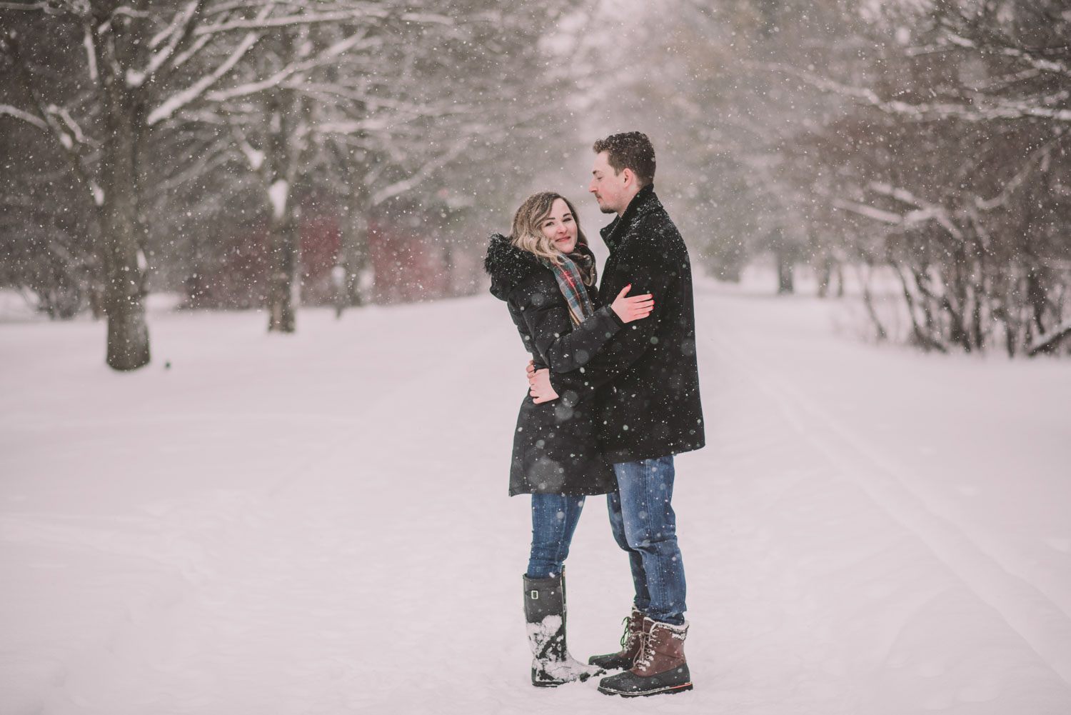 Josslyn and Adam’s stunning winter engagement session took place during a heavy snow fall in Guelph, at the University of Guelph Arboretum! “Whimiscal” was our word of the day, and was it ever!