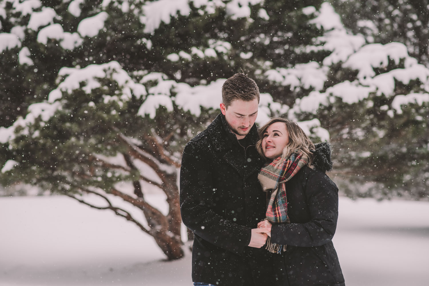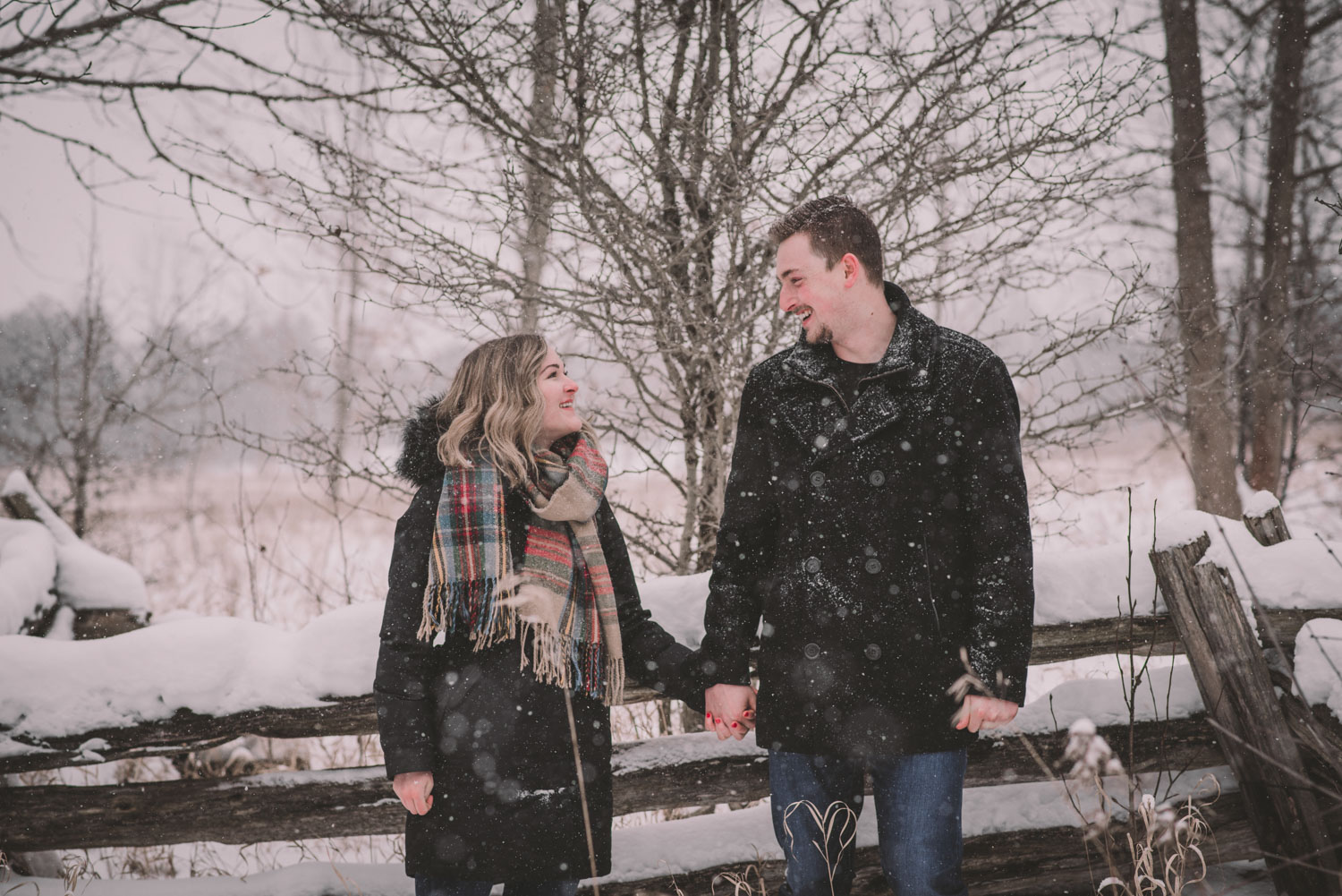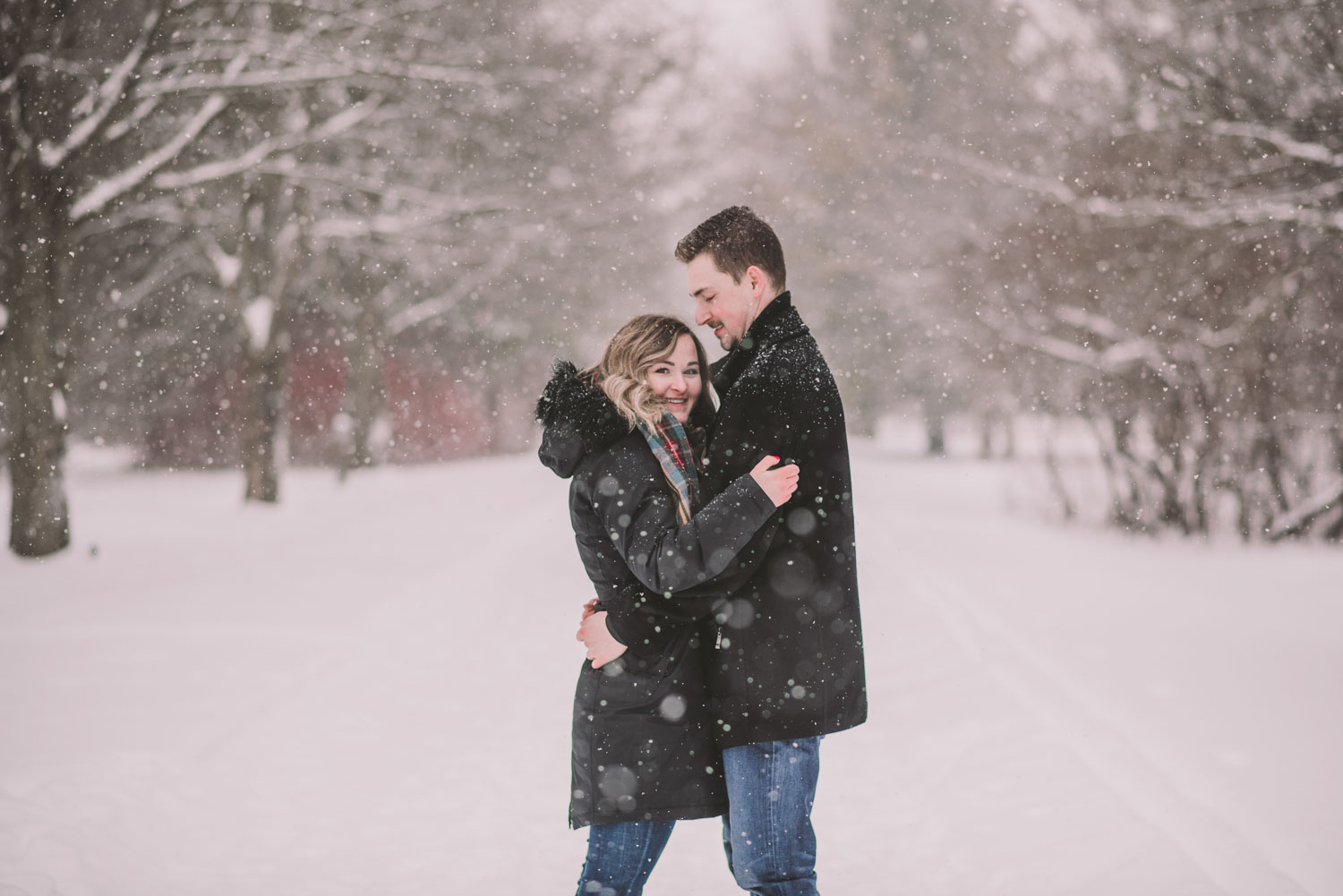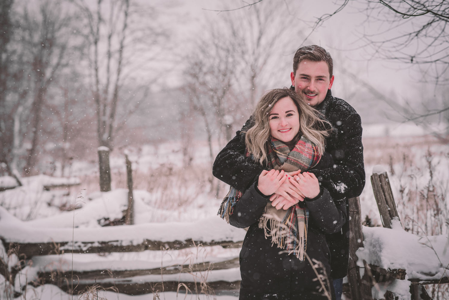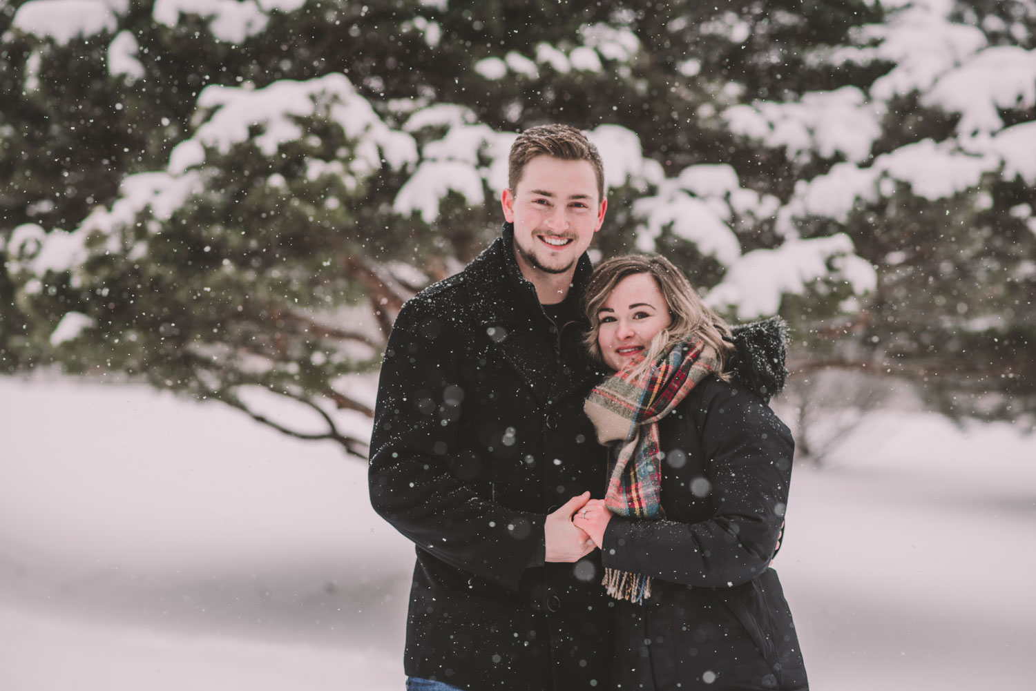 Josslyn and Adam’s stunning winter engagement session took place during a heavy snow fall in Guelph, at the University of Guelph Arboretum! “Whimiscal” was our word of the day, and was it ever!