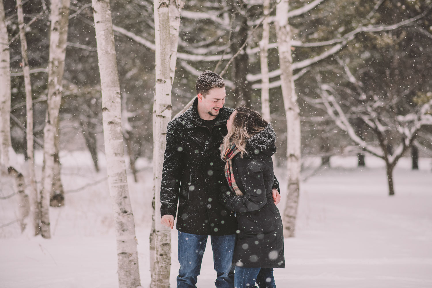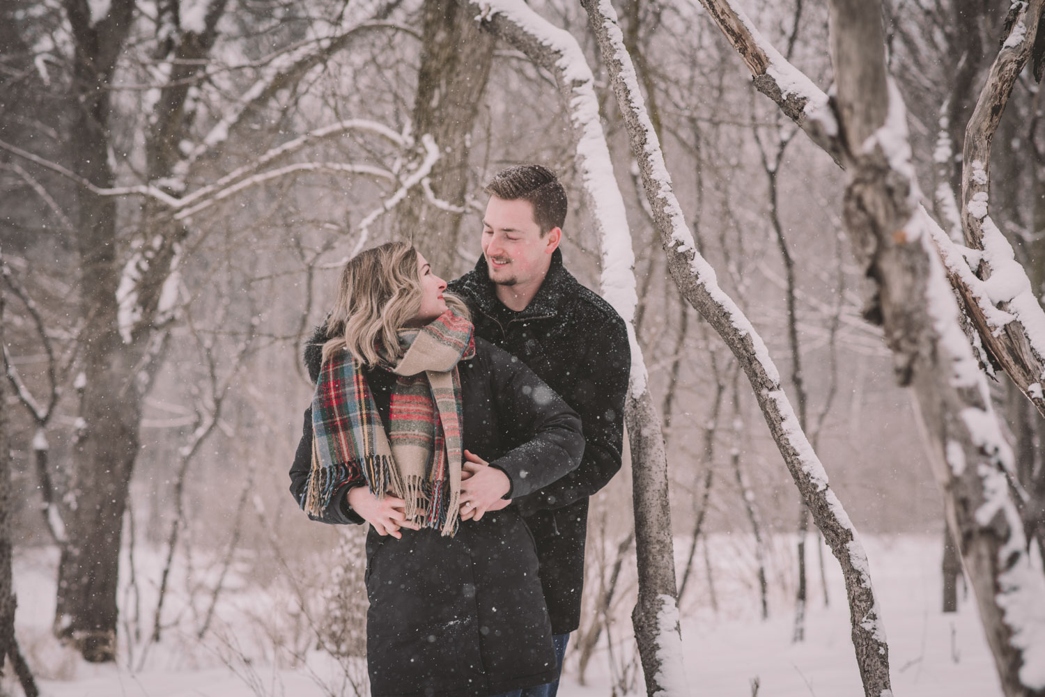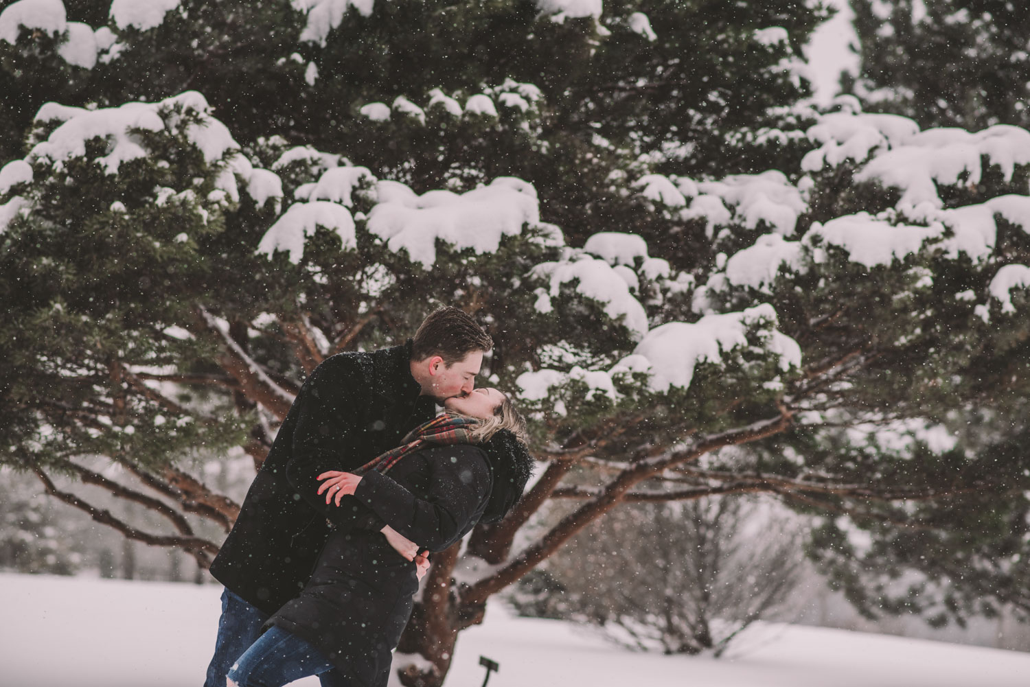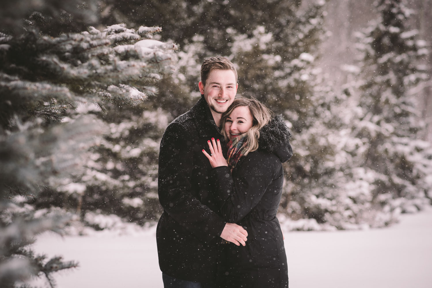 Josslyn and Adam’s stunning winter engagement session took place during a heavy snow fall in Guelph, at the University of Guelph Arboretum! “Whimiscal” was our word of the day, and was it ever!