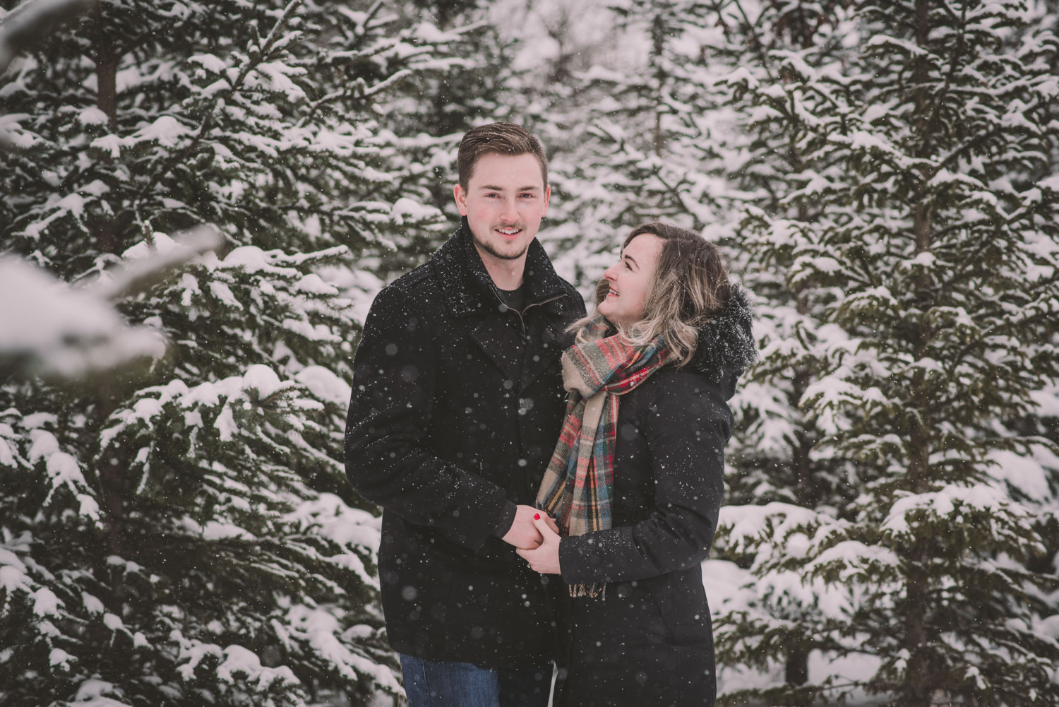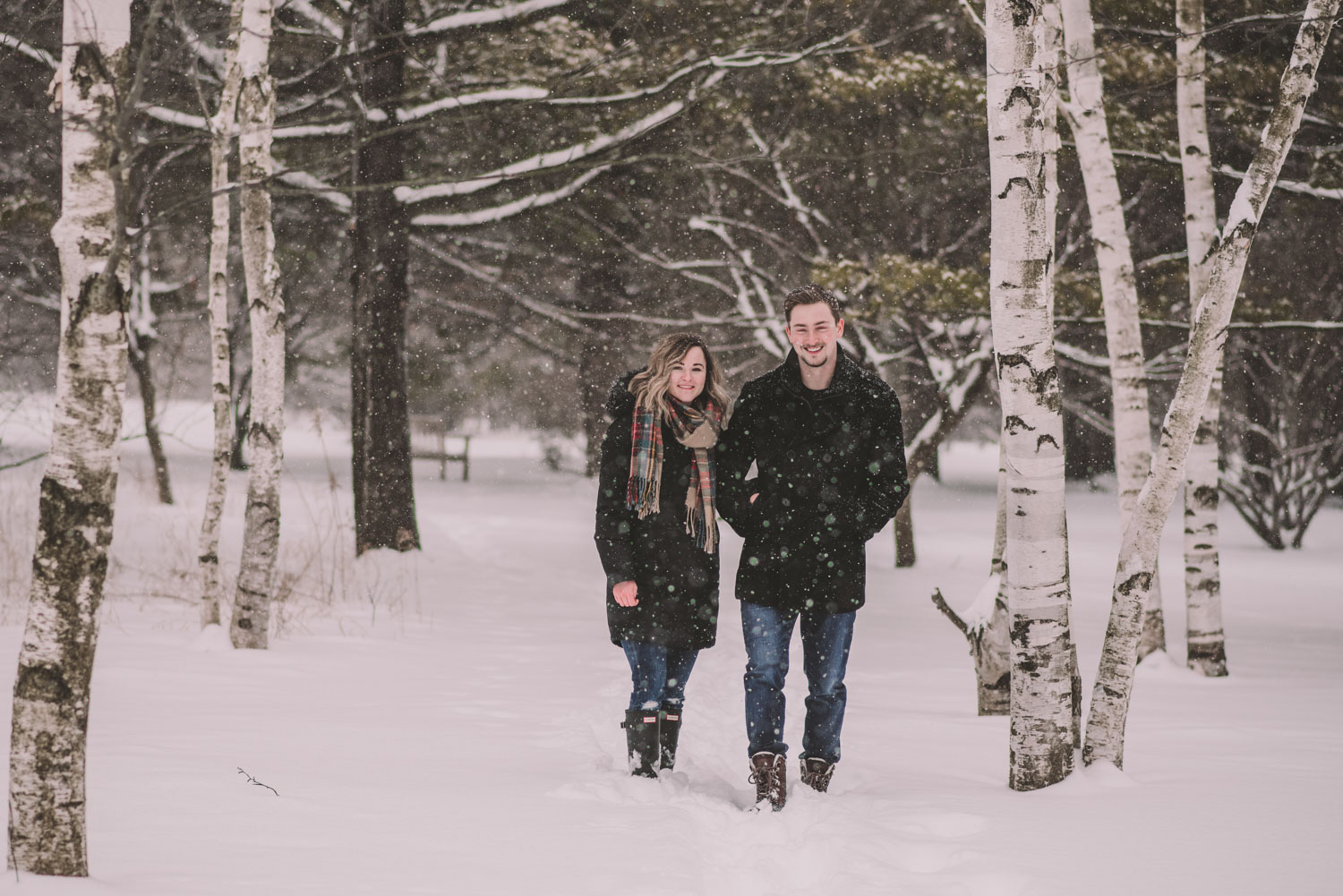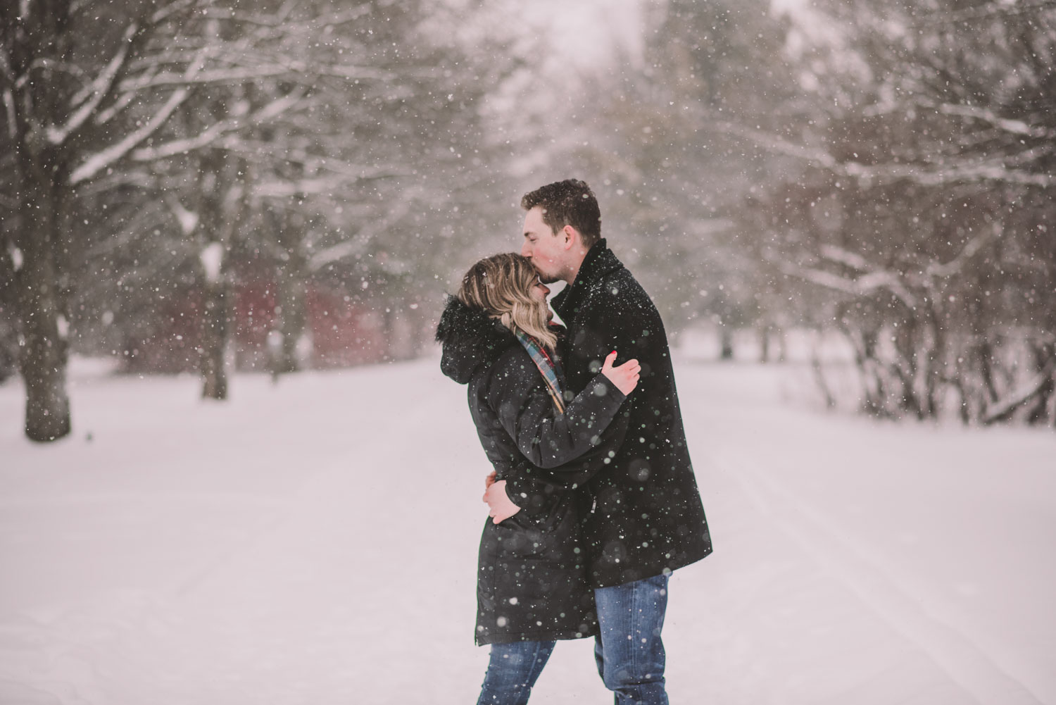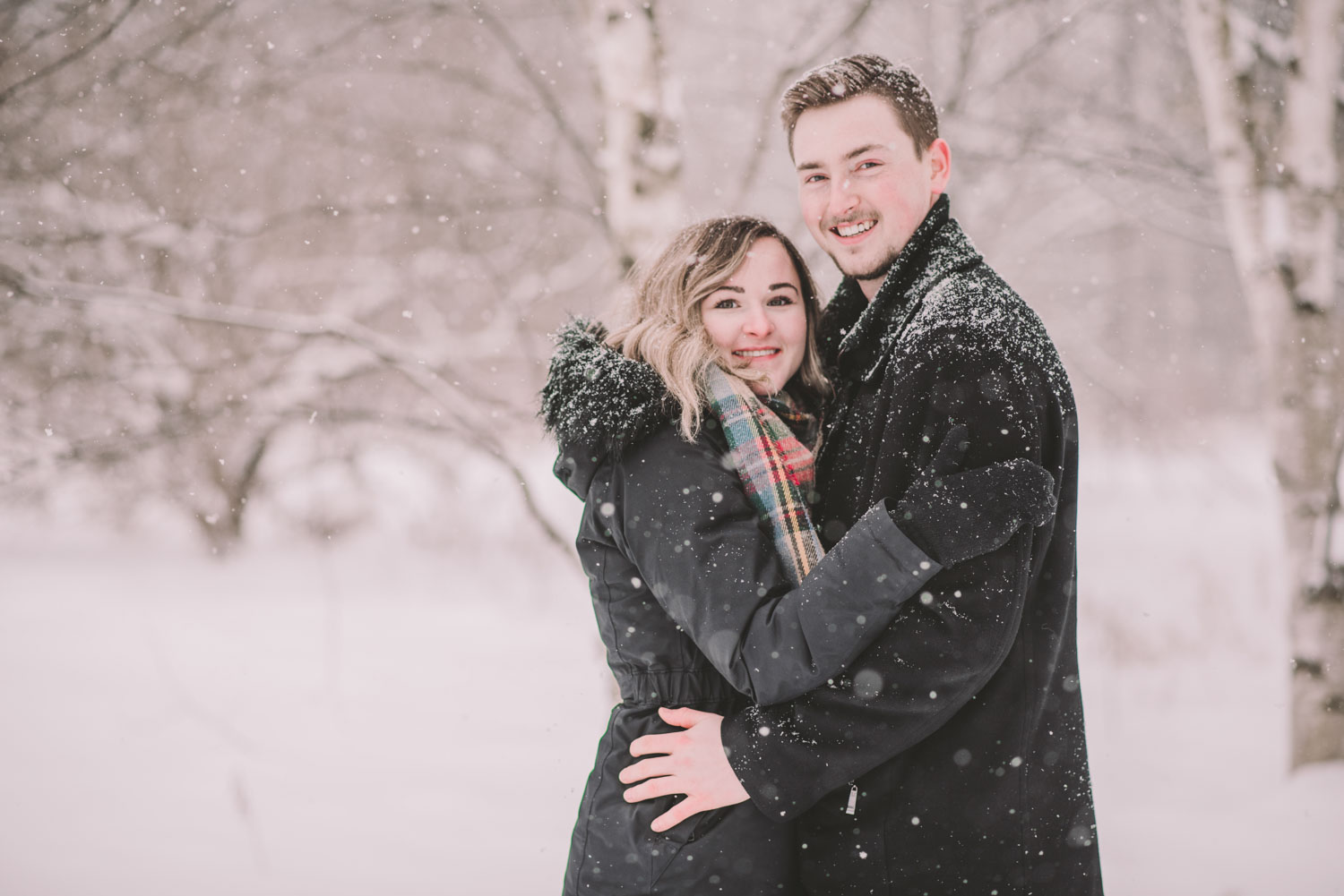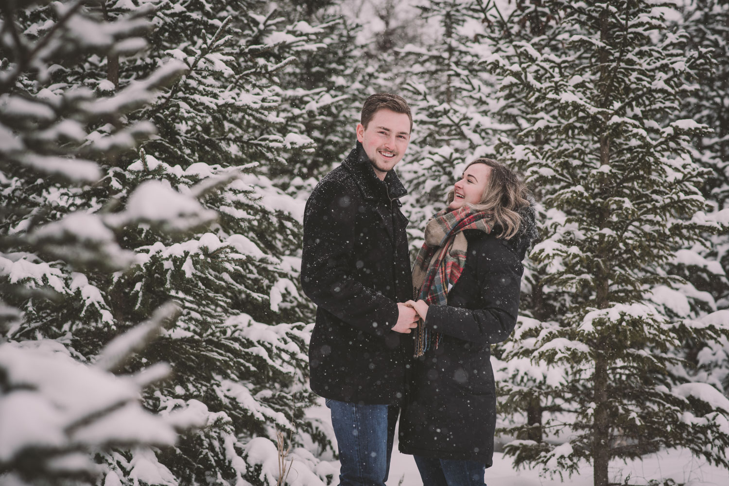 Josslyn and Adam’s stunning winter engagement session took place during a heavy snow fall in Guelph, at the University of Guelph Arboretum! “Whimiscal” was our word of the day, and was it ever!