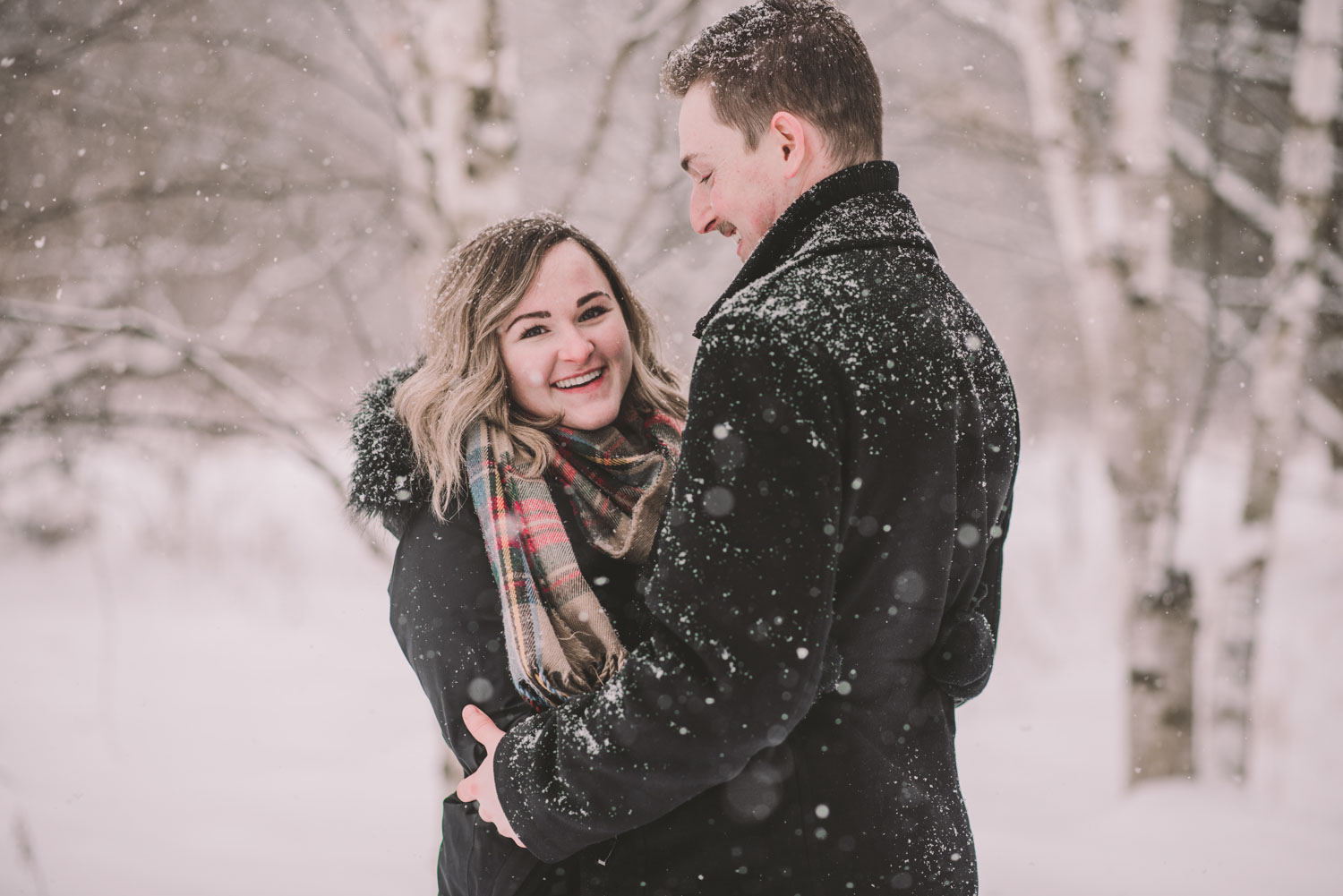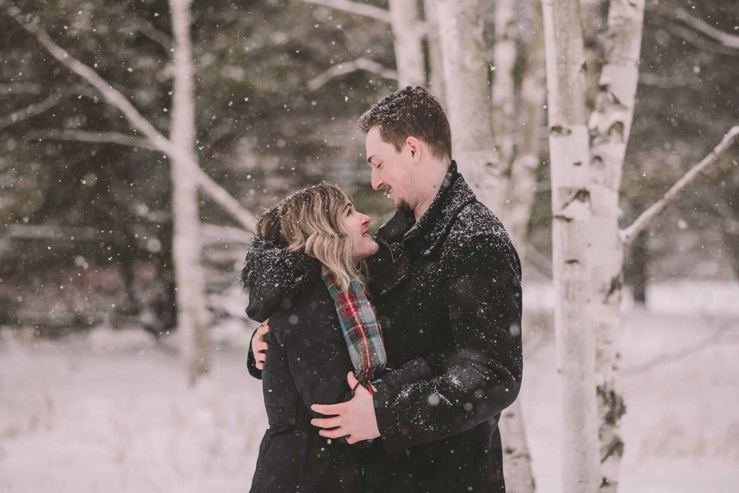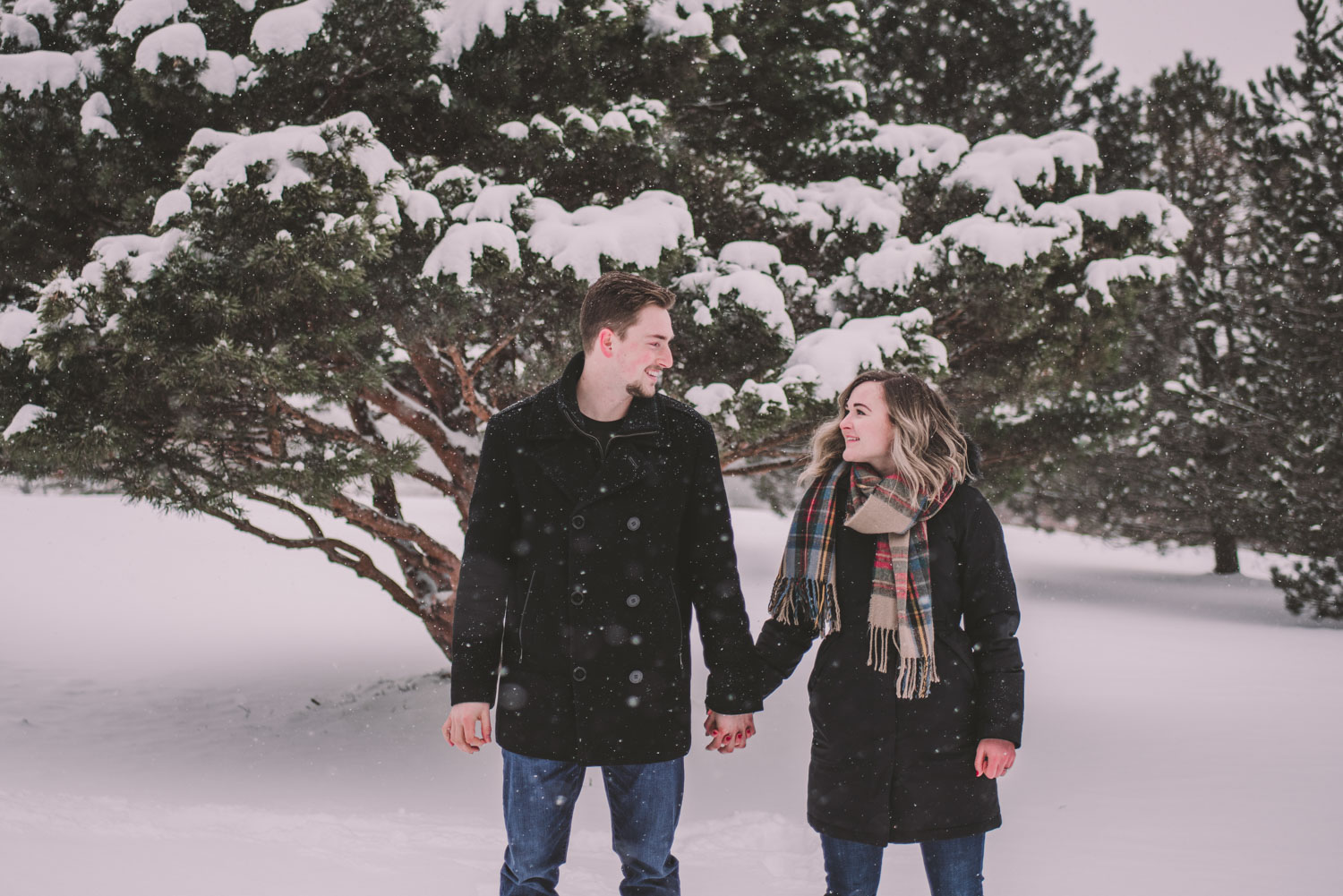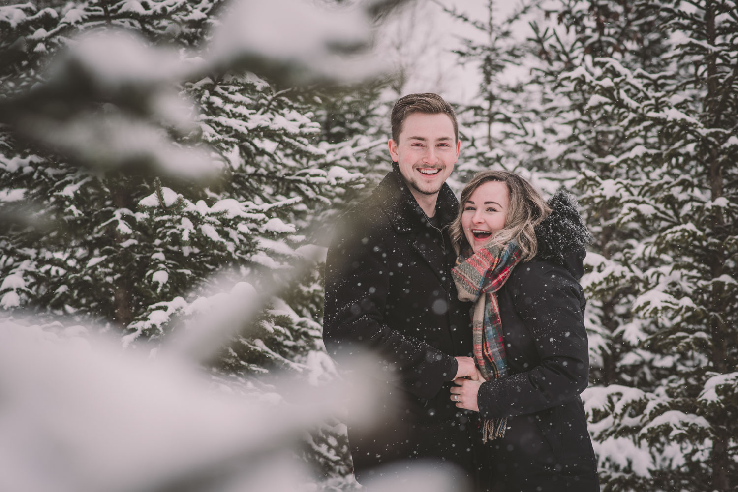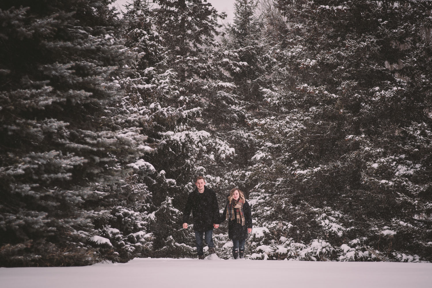 Josslyn and Adam’s stunning winter engagement session took place during a heavy snow fall in Guelph, at the University of Guelph Arboretum! “Whimiscal” was our word of the day, and was it ever!