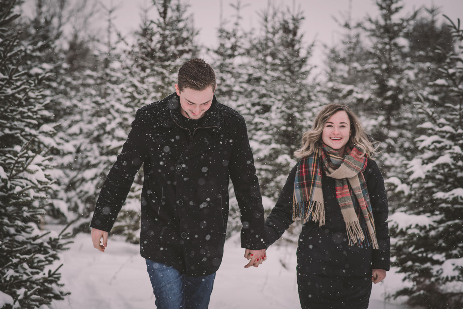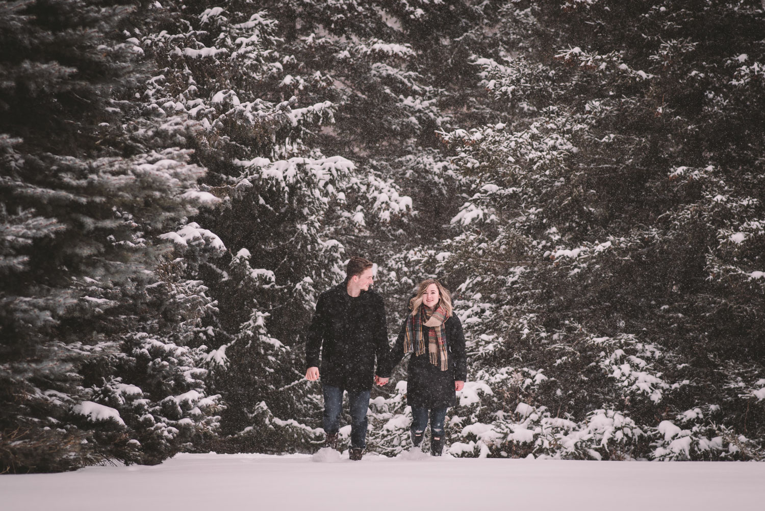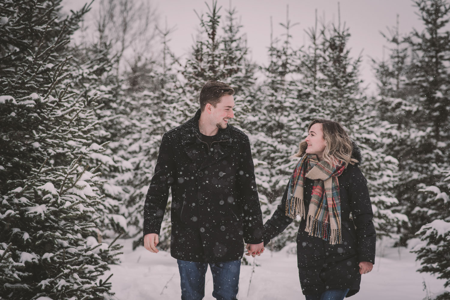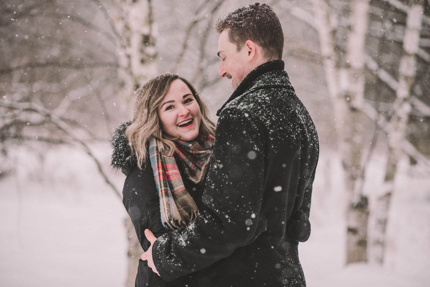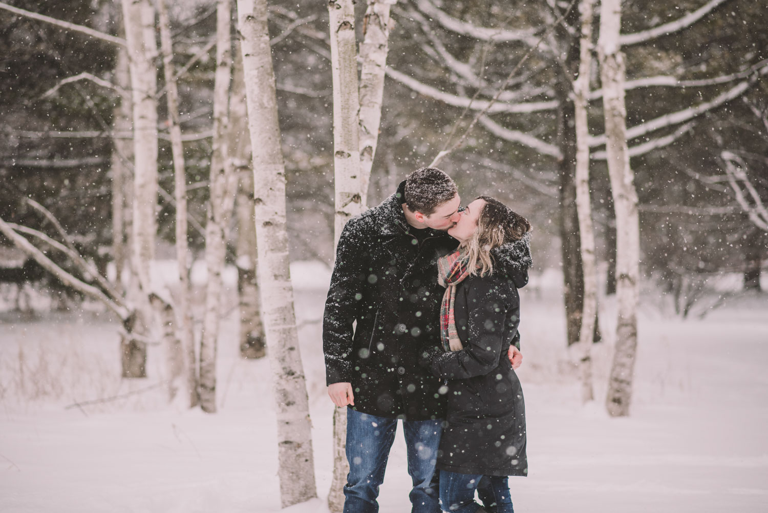 Josslyn and Adam’s stunning winter engagement session took place during a heavy snow fall in Guelph, at the University of Guelph Arboretum! “Whimiscal” was our word of the day, and was it ever!